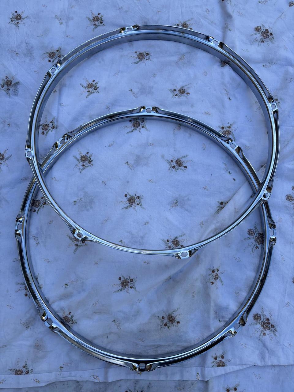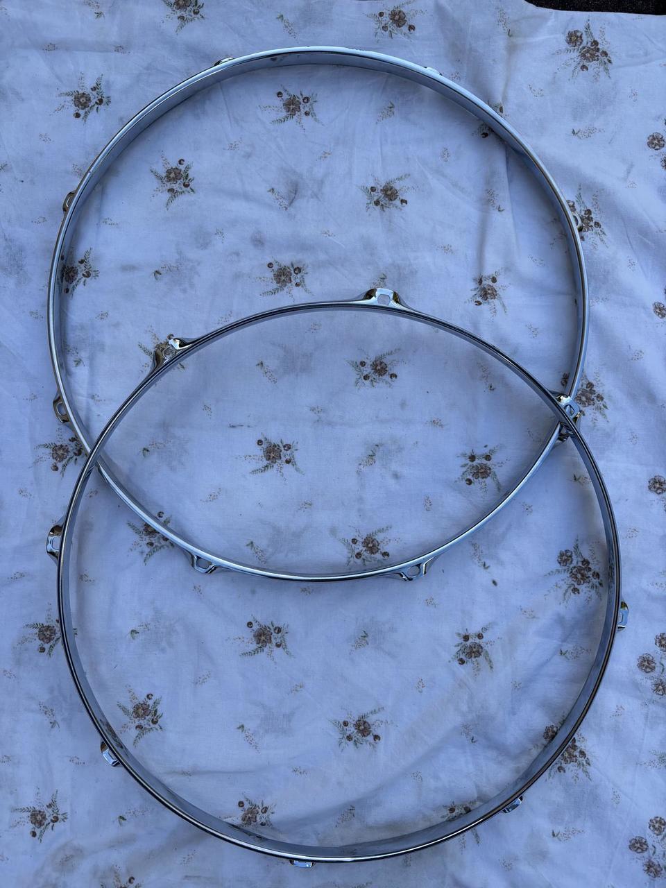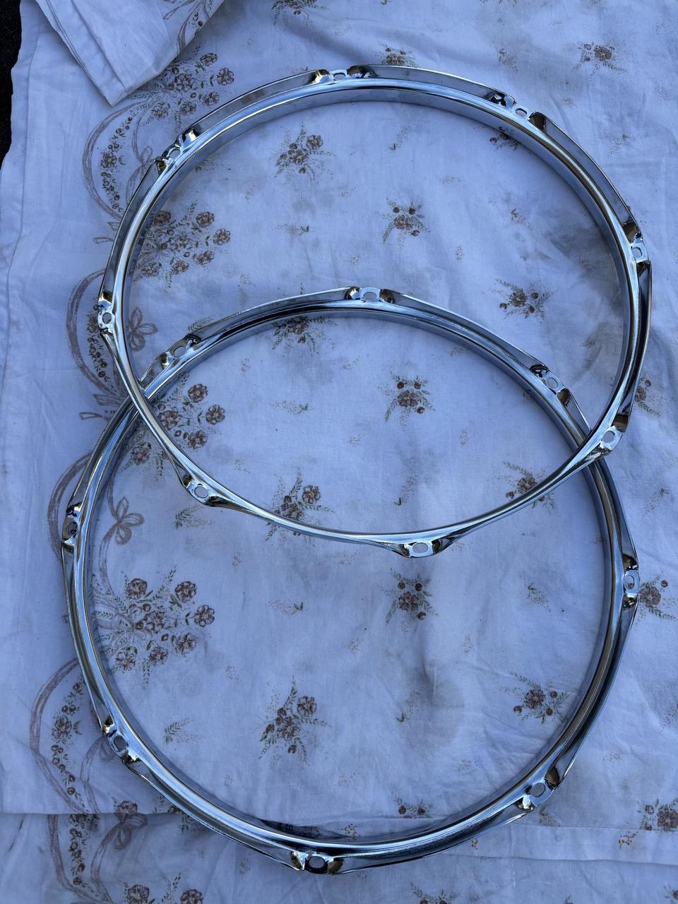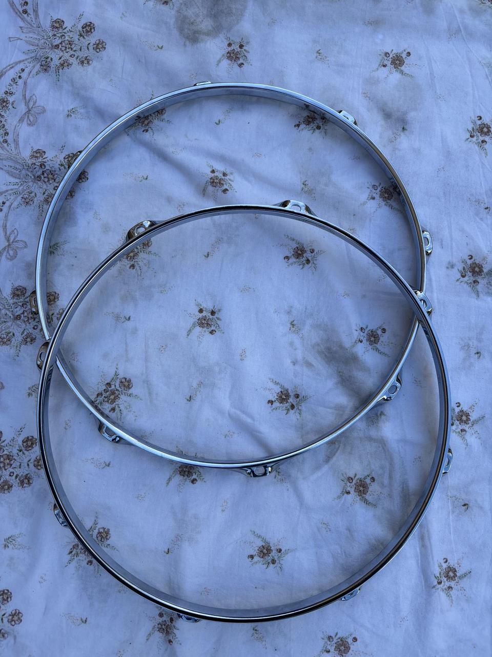 Prodám zachovalé obruče na bicí. Stav 14” výborný, 16” jsou vidět známky použití. Chrom v pořádku be...