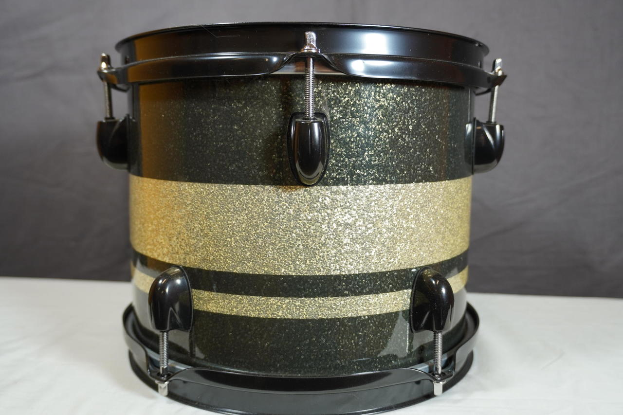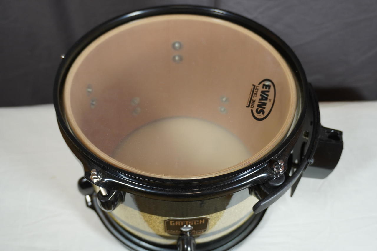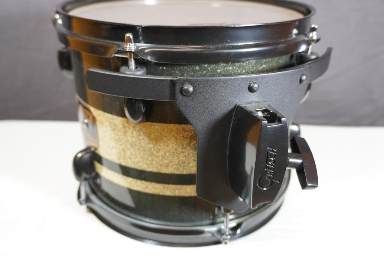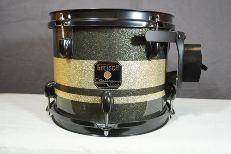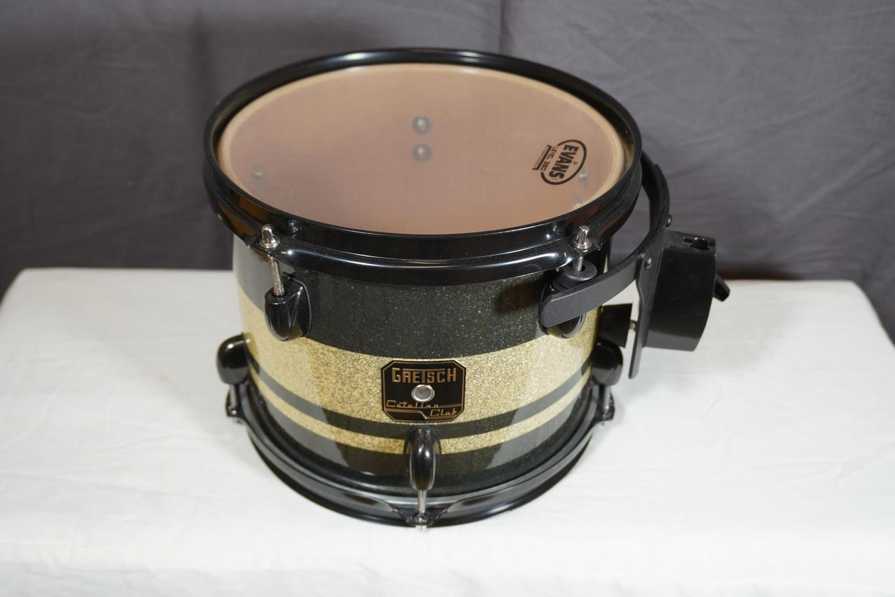 Prodám 10" tom Gretsch Catalina club mod v barvě black & gold glitter wrap s černým hardwarem a tom holderem.
