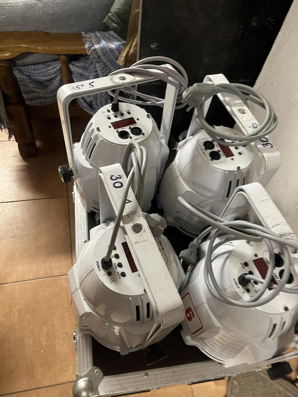 Vyzařovací úhel: 2 ks 30 ° a 4 ks 30 ° Strobo efekt, Dimmer, působivý světelný výkon, aktivní chlazení. Ovládání pomocí DMX signálu (7 kanálů) nebo v režimu Masetr/Slave, ovládací panel s LCD displejem pro nastavení provozních režimů. P.C. Tady na bazaru 4 000/ks Prodáme za 1 -2 000/ks