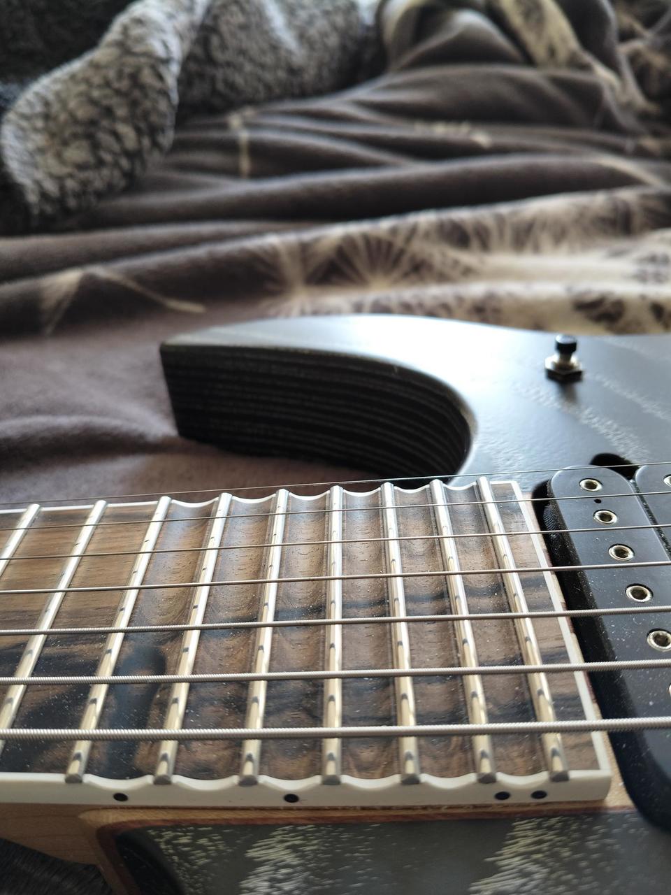 Nadstandard kytary je modré led podsvícení orientačních teček z vrchu hmatníku, tlačítko KILL switch a zvlněný hmatník od 18 do 24 pražce. Kytara je i s obalem viz foto. Ke kytaře mám koupené úplně nové snímače DiMarzio Dreamcatcher 7 a Rainmaker 7, které jsem chtěl vyměnit za původní snímače. Cena nástroje i se snímači DiMarzio Dreamcatcher 7 a Rainmaker 7 je 55 tis. Bez snímačů 50 tis. Veškeré další info o kytaře + fotografie v odkaze.