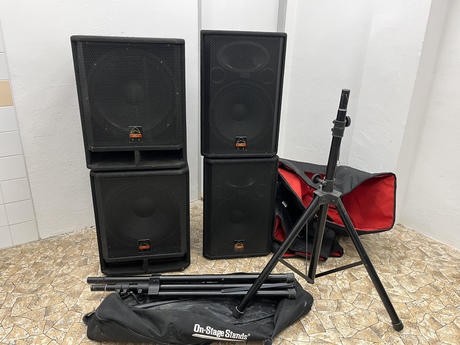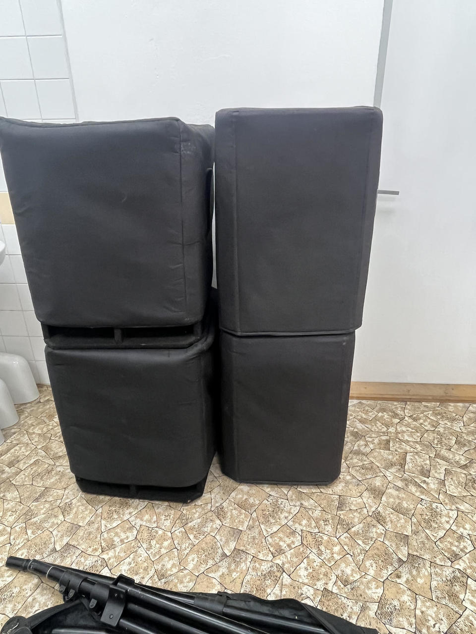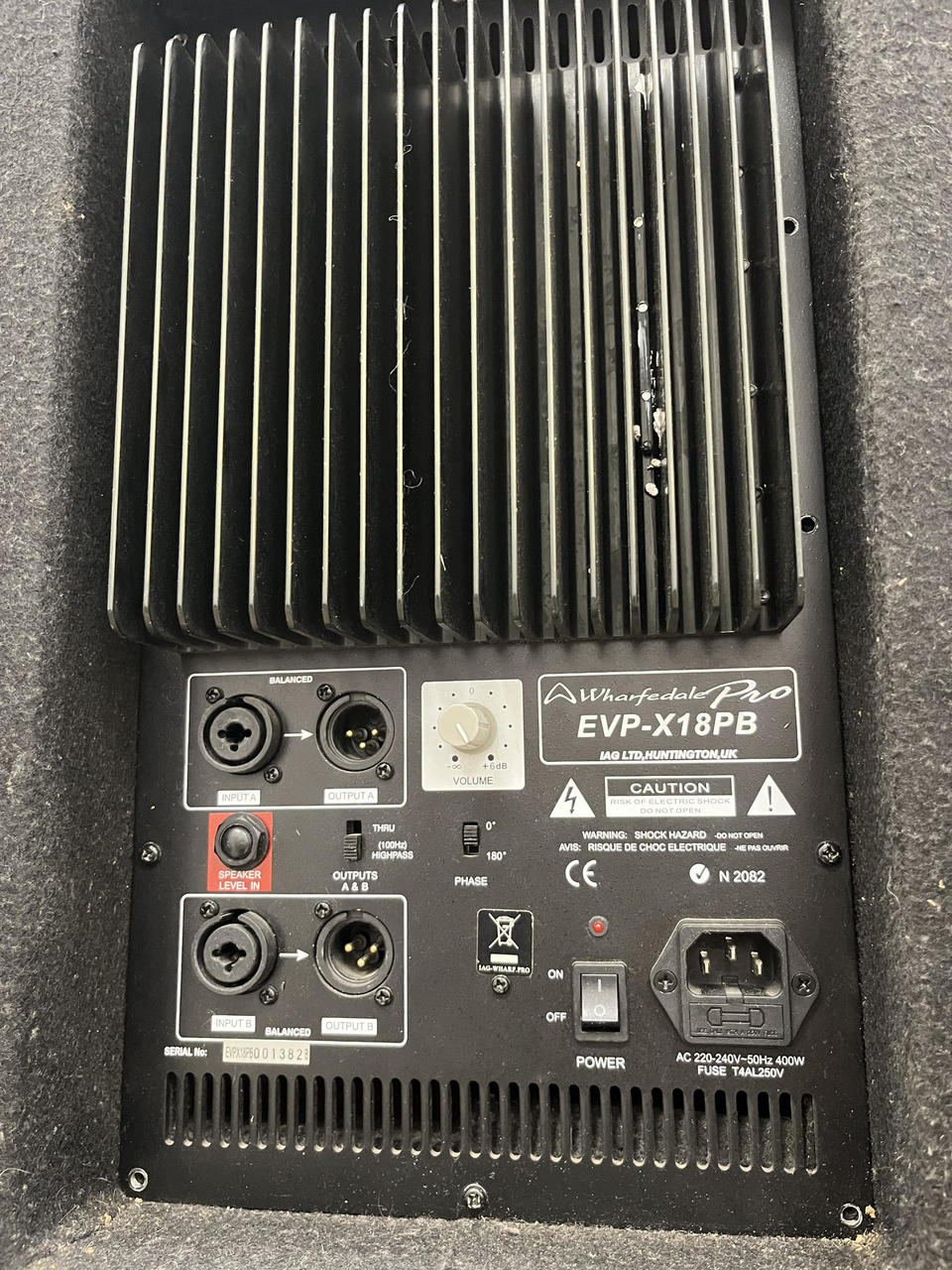 Prodám aktivní PA systém značky Wharfendale PRO + obaly, stojany, kabeláž (vše na foto). Sestava 2x aktivní subwoofer EVP -X18PB - bedny osazeny 18“palcovým reproduktorem. Vrchy 2x EVP – X15P, 2 pasmové aktivní bedny osazeny 15“palcovým reproduktorem + 1.75" (44mm) titanový výškový reproduktor s eliptickým tvarem 90 x 60 hornového systému. PA nevyužito , jen stojí ve zkušebně.Případná výměna za něco kytarového.