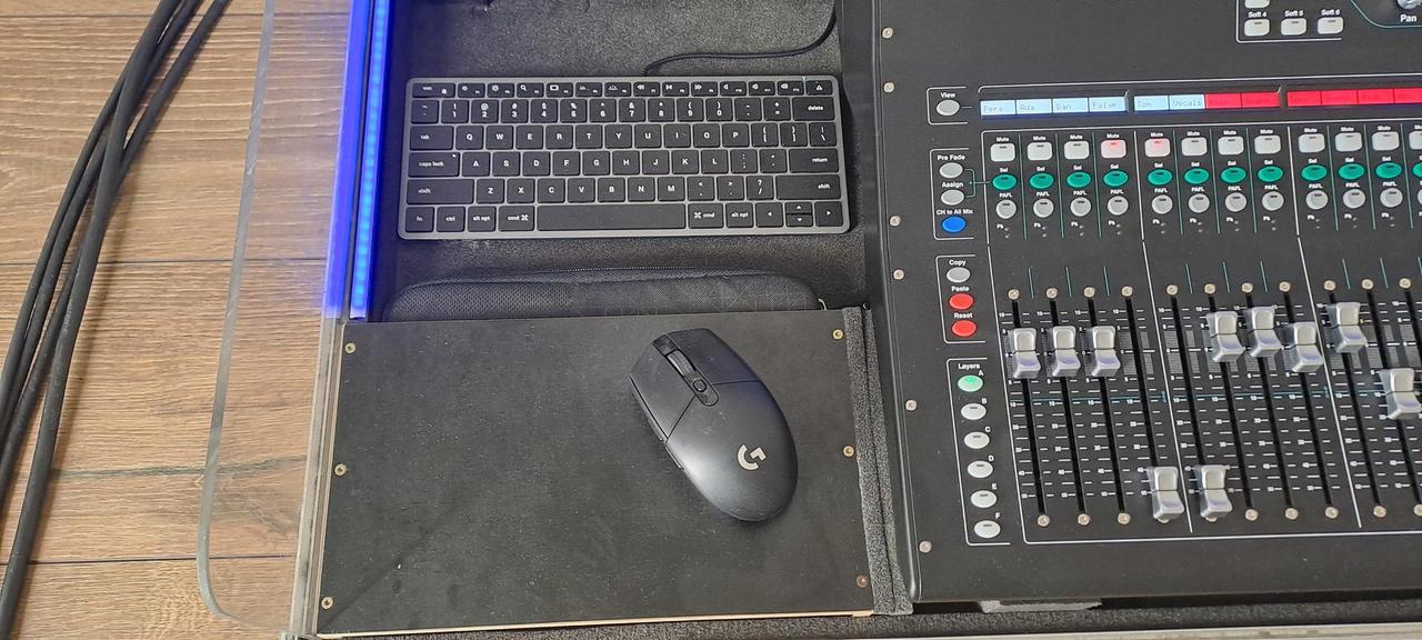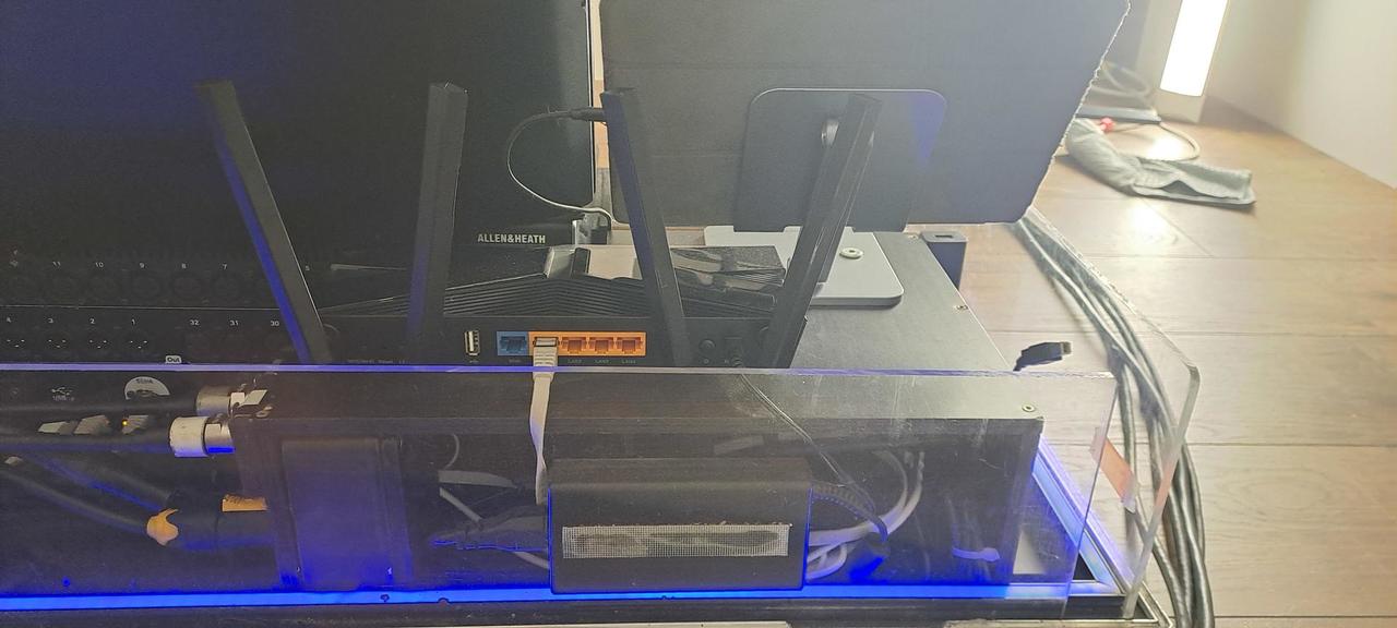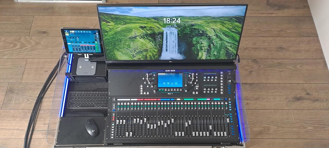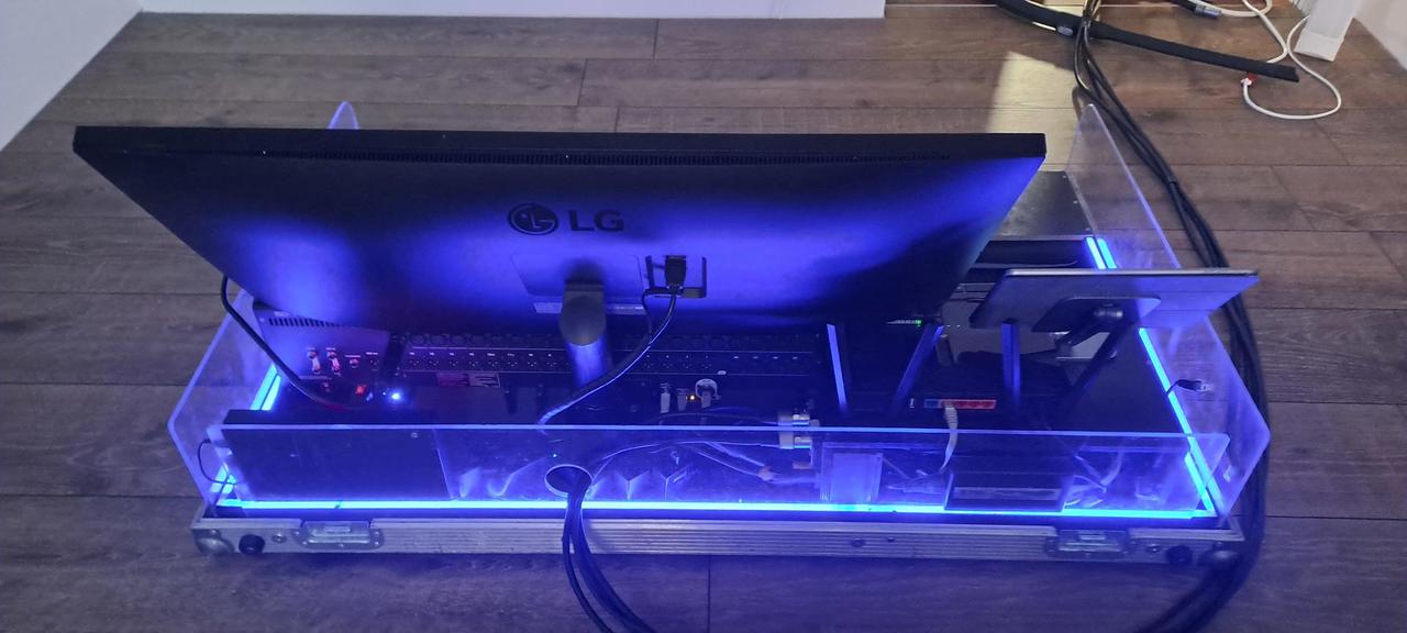 K pultu přidávám vše toto příslušenství + uvedu pořizovací ceny. - Case vyrobený na zakázku (12tis.) - Mini PC MSI (16tis) - LG monitor 34" (6tis) - Myš + klávesnice (2,5tis) - Wifi router (2tis) - iPad Air (10tis) - V iPadu nainstalovaný analyzátor od Smaart (1tis) - Držák + pouzdro iPadu, ventilátory Noctua, veškerá kabeláž, led osvětlení, usb HUB, (cca 10tis) - Thomann talkback mikrofon (2tis) PC obsahuje: Windows11, AMD Ryzen 5 5600G (6x3,9GHz - boost 4,4GHz), RAM 8GB, Samsung M2 disk s pamětí 1TB. PC zvládne nahrávat 32stop v 96kHz a používal jsem ho na Virtual soundcheck. Monitor ideální pro použití s Waves Audio. Pod pultem jsou dva tiché ventilátory Noctua, lze je vypnout vypínačem. Modré podsvícení casu je stmívatelné pomocí tlačítka. Propojovací kabel mezi pultem a bubnem se skládá z 2 x ethernet, 1 x XLR, 1x 230V. Vše je staré stejně s Pultem až na iPad ten je cca 10let starý, ale baterie pořád dobrá a je tam nainstalovaný RTA analyzátor od Smaartu. Původní celková pořizovací cena byla 209tis. Nyní prodám vše za 119tis. V případě zájmu a pro více info volejte na 606155469.