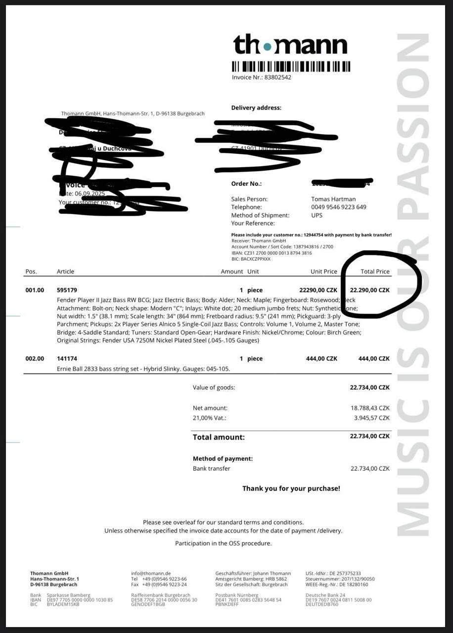 Prodám baskytaru Fender Player II Jazz Bass RW BCG, koupenou v září 2025 tudiž je na ni ještě dva a pul roku záruka, fakturu dám. Je hraná minimálně, pár zkoušek a 1 koncert ,opravdu perfektní stav, o zvuku nemluvě.