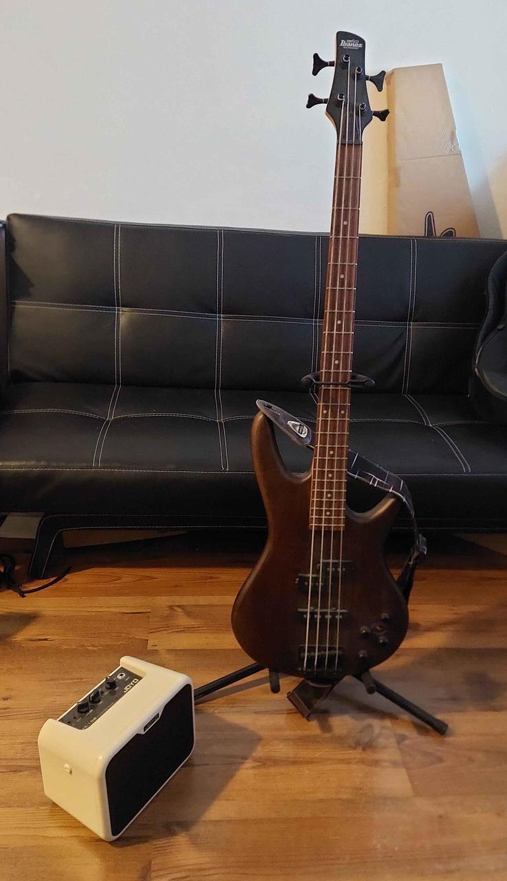 Prodávám basu, přidávám k ní i stojan, popruh a malé kombo JOYO MA-10B.
