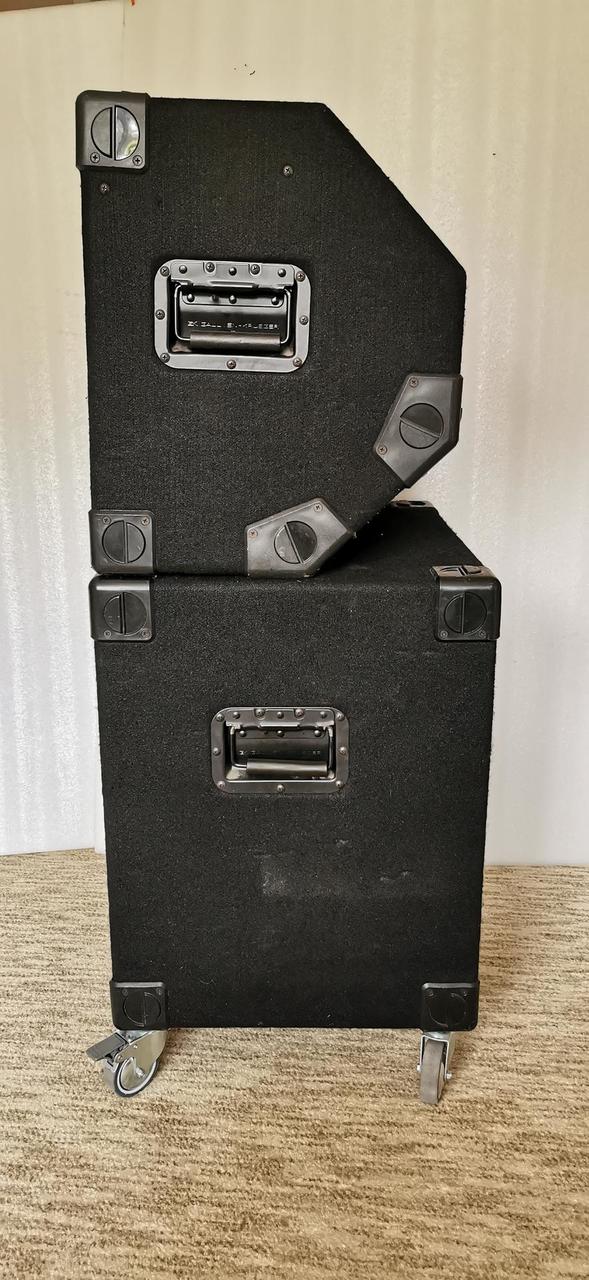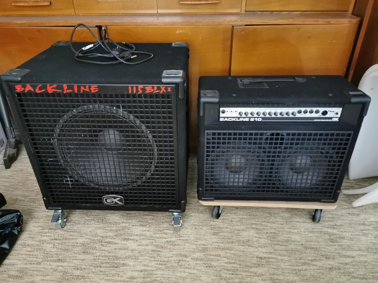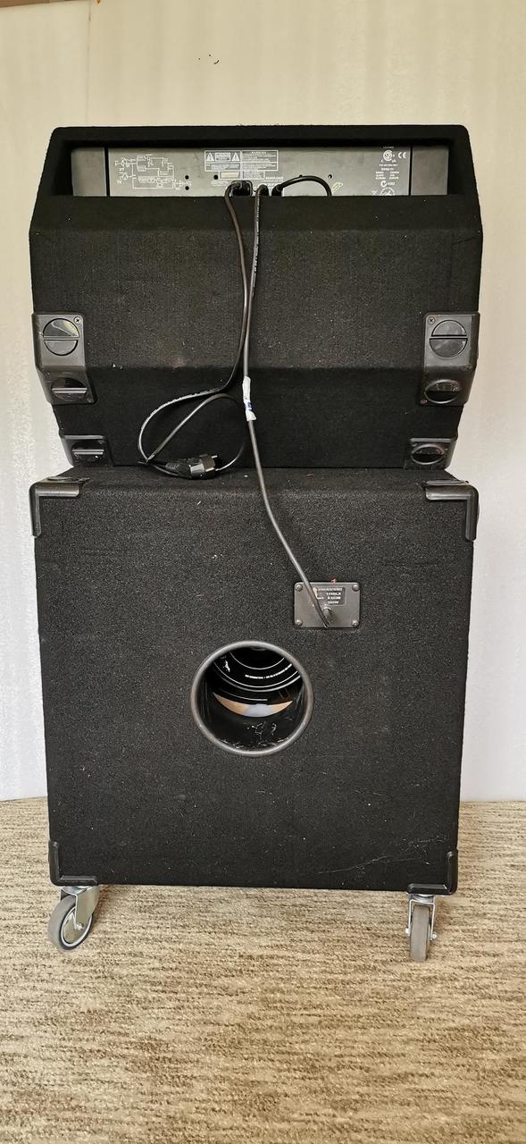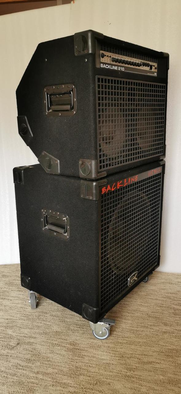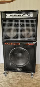 Basové kombo BackLine 210. Reproduktory 2x10 palců, výkon 300W. Rozměry : šířka - 60cm, výška - 49cm, hloubka - 41 cm, váha - 31,5 kg. Basová reprobedna BackLine 1x15. Reproduktor Eminence 15 palců, výkon 200W dle štítku, ale nejsem si jist, jestli tam není silnější reproduktor. Rozměry : šířka - 60cm, výška 59cm + kolečka 10cm, hloubka 47cm, váha 35kg. Osobní odzkoušení - Kobeřice u Brna