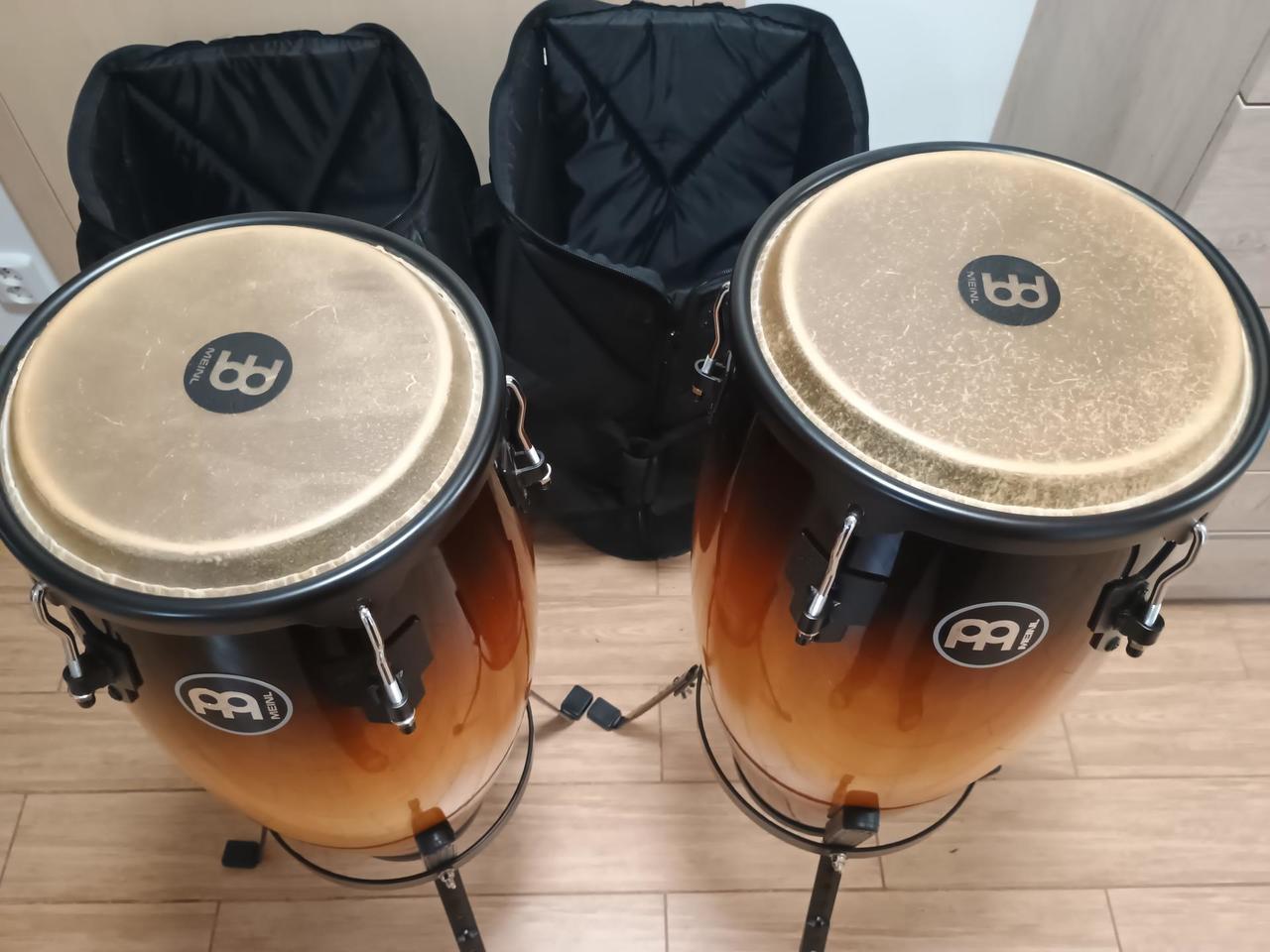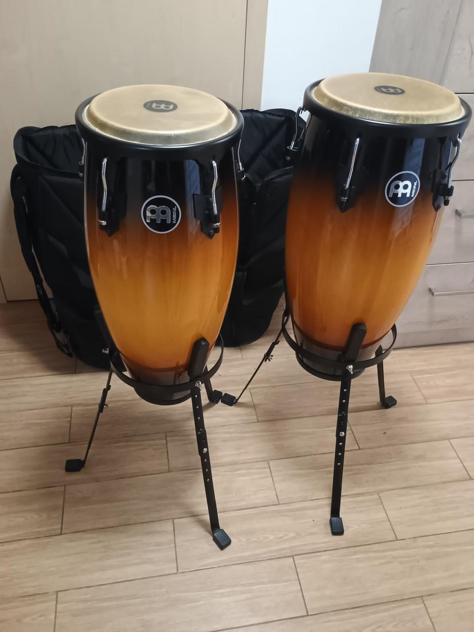 Prodám CONGA MEINL HC555VSB - koupeno do domácího studia (důvod prodeje - ukončení činnosti). Conga jsou jako nová, prakticky nehraná - stály cca 7 let v koutě.. Prodej včetně stojanů a obalů - zipy jako nové, plastové švy se lehce drolí (viz. foto). Cena 10500,-, nebo dle dohody. Osobní odběr Tuchoměřice