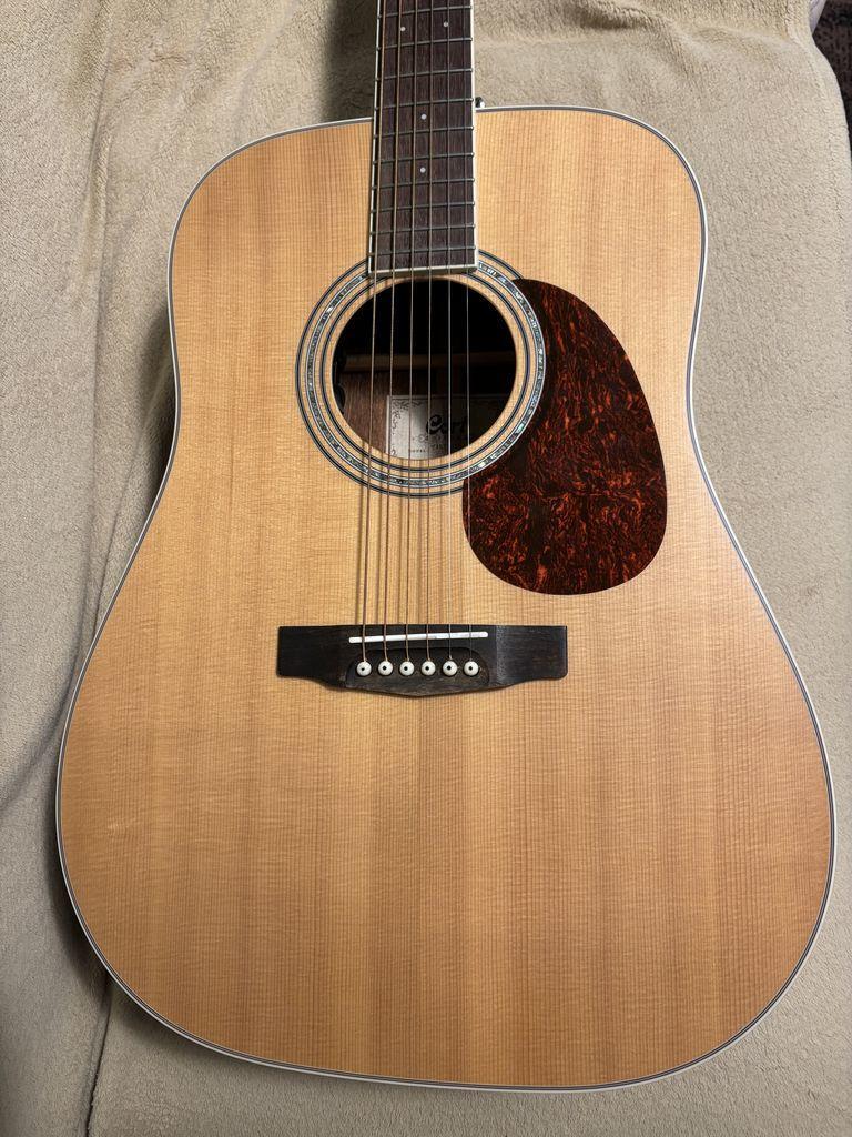 Prodám málo využívanou elektroakustiku Cort Earth 100FC NS (využívána pouze na domácí cvičení) Kytara po seřízení u kytaráře, nízký dohmat, zabroušené pražce, apod. Kytara má snímač, konektor na aparát je v pinu na popruh, napájení 9V baterie). Je to limitovaná edice pro Musichaus Korn. Ke kytaře zdarma přidám přepravní obal. Typ těla je Dreadnought, deska je masivní smrk, zadní deska a luby , mahagon, hmatník palisandr, krk mahagon "C". Pouze osobní vyzkoušení a převzetí Praha !!!