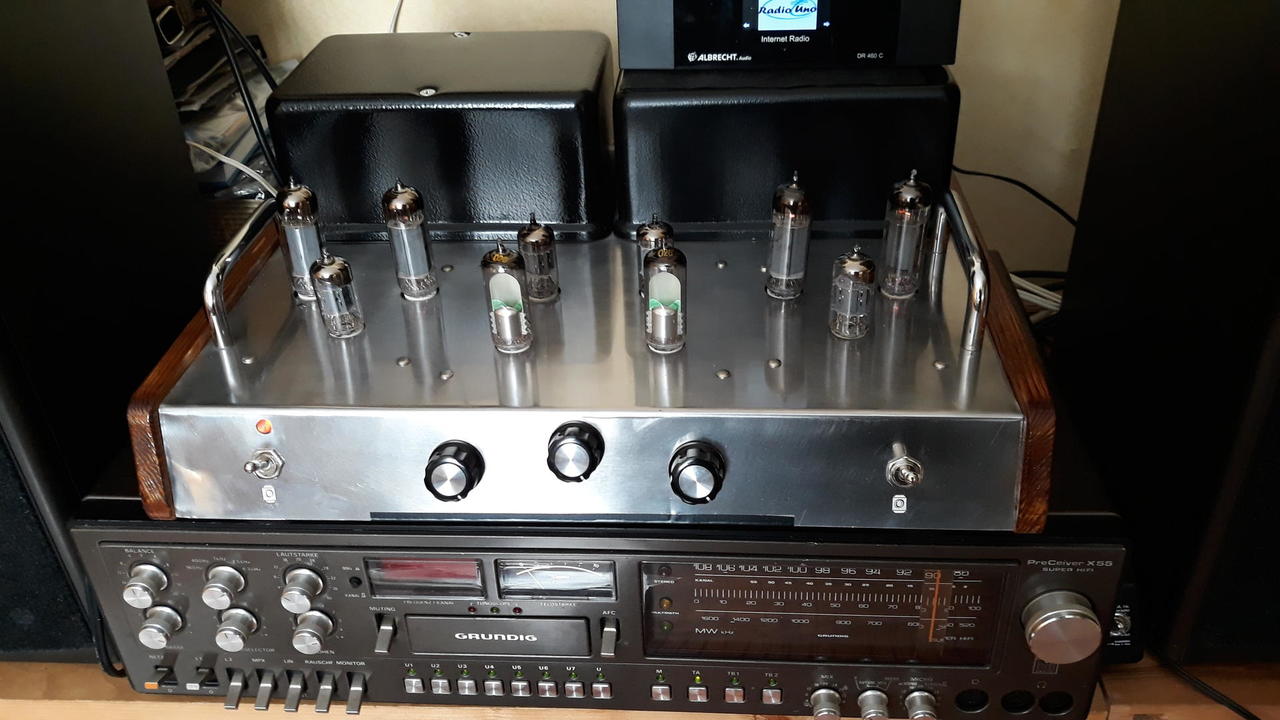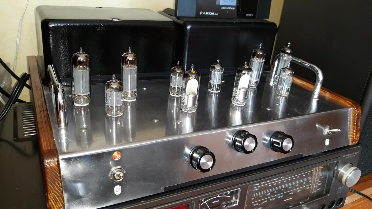 Prodám elektronkový zesilovač 2x10w na každém konci 2xEL84, vhodné pro příznivce elektronkového zvuku. Dokumentace a náhradní elektronky k tomu. Cena 4900 kc