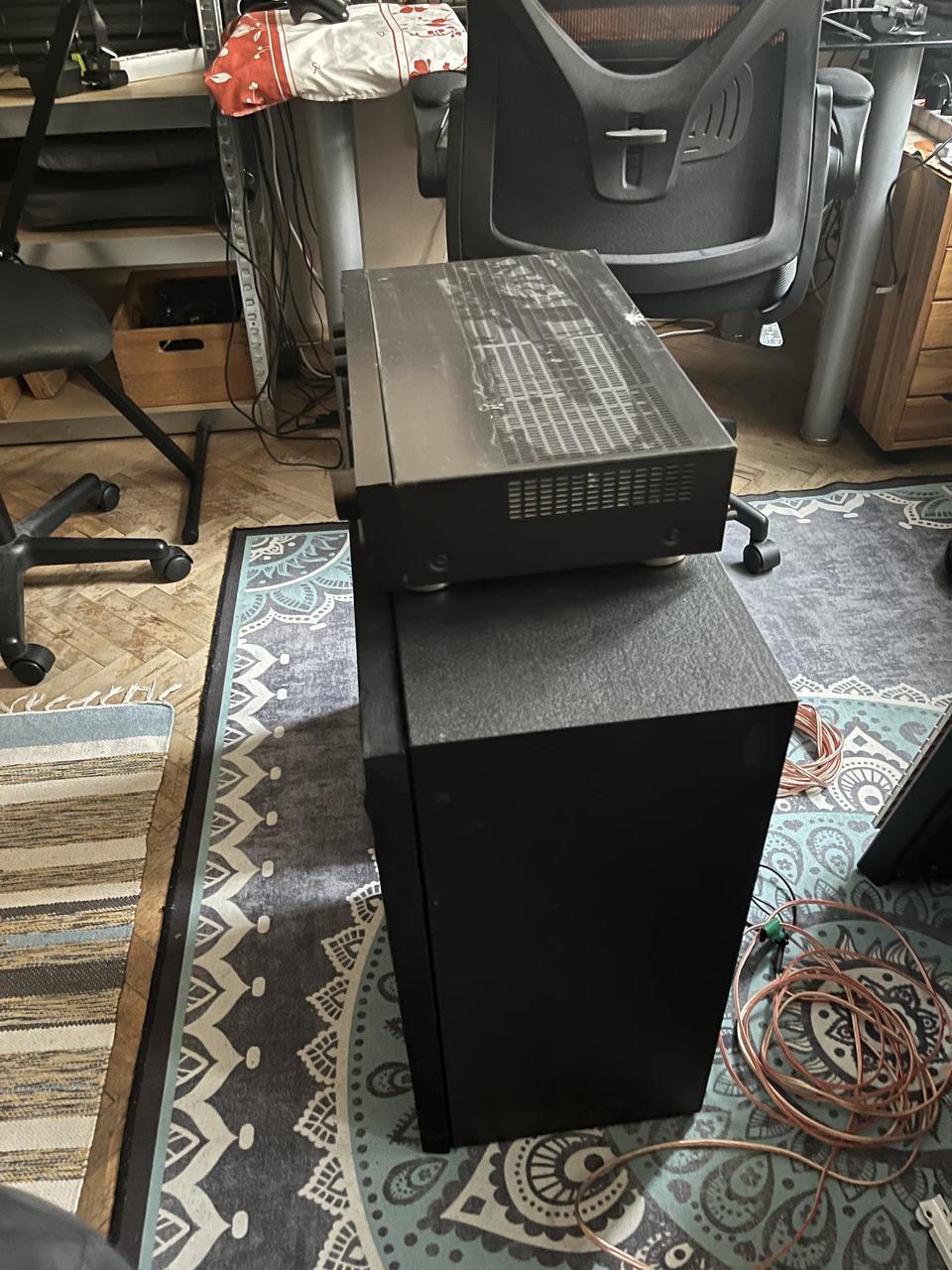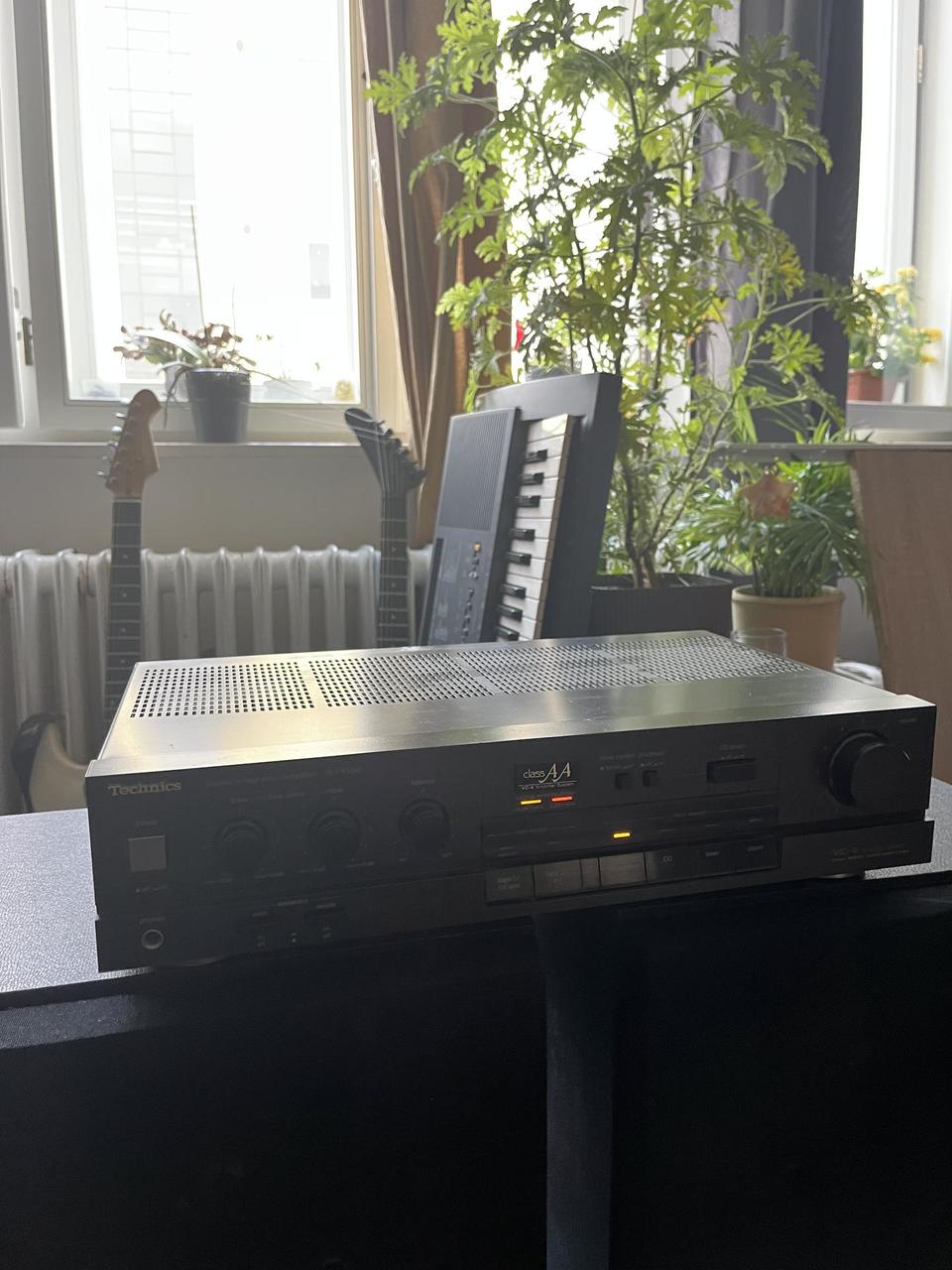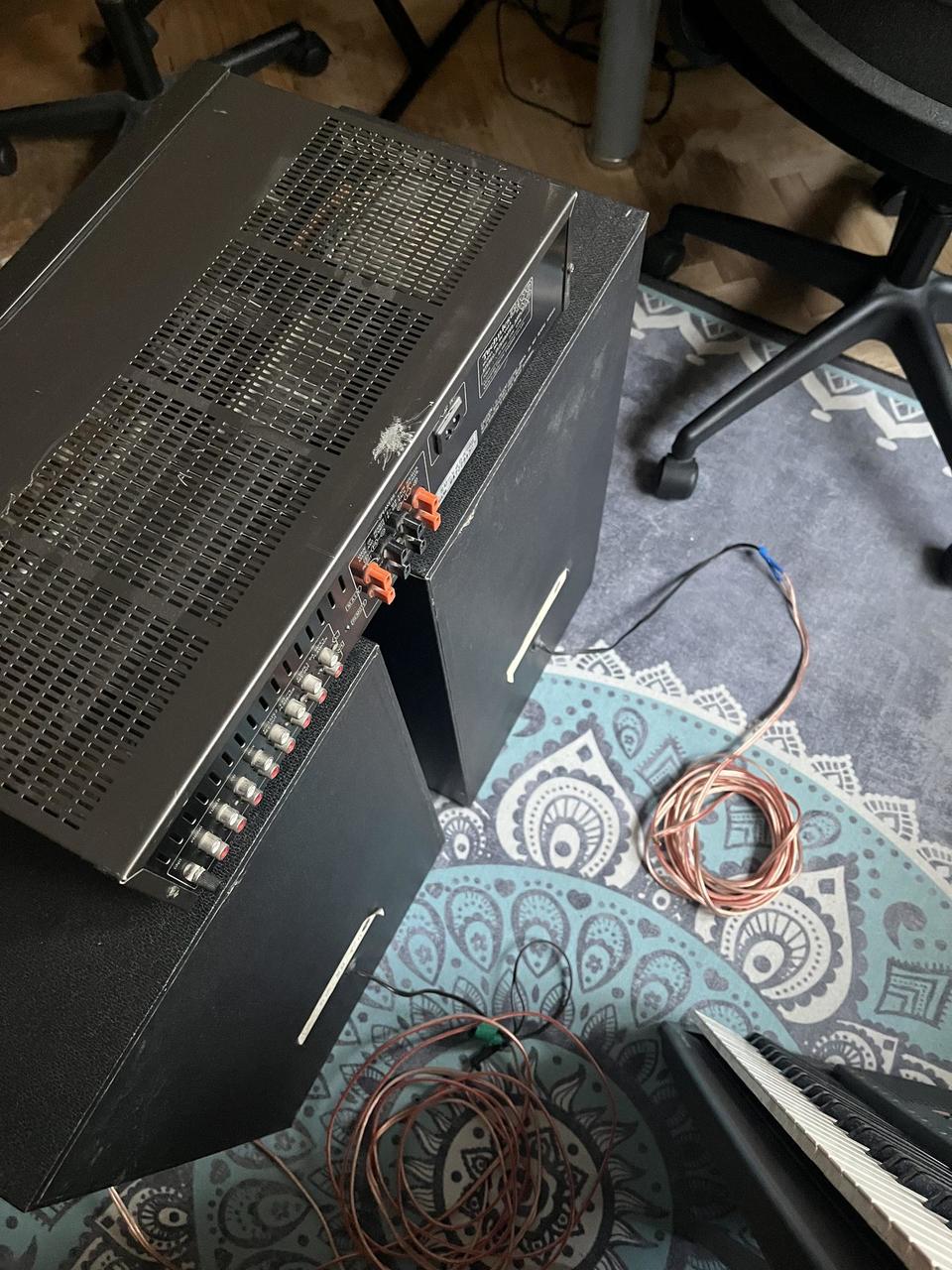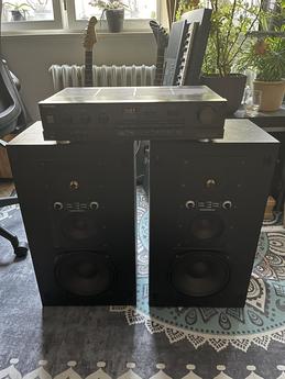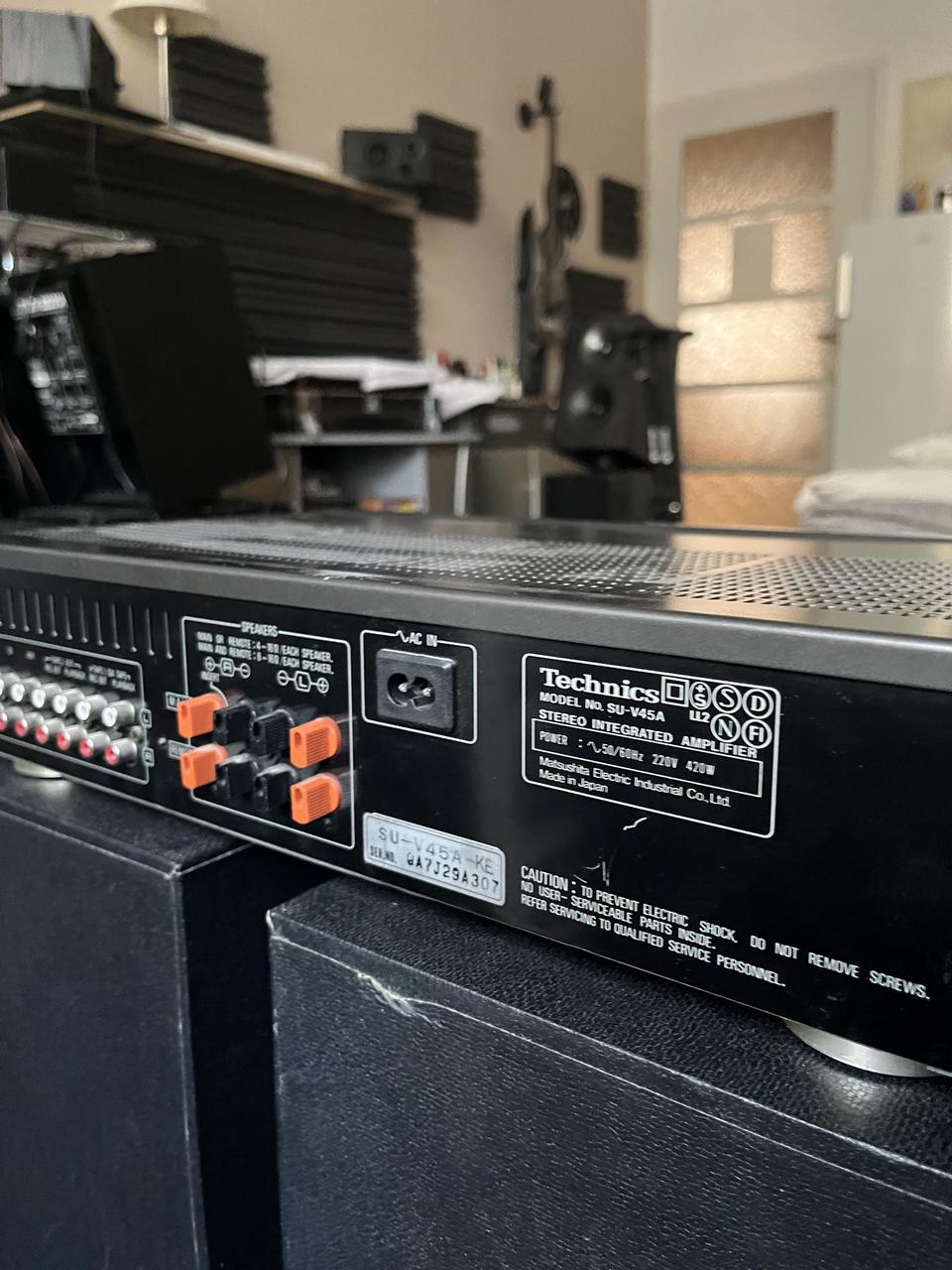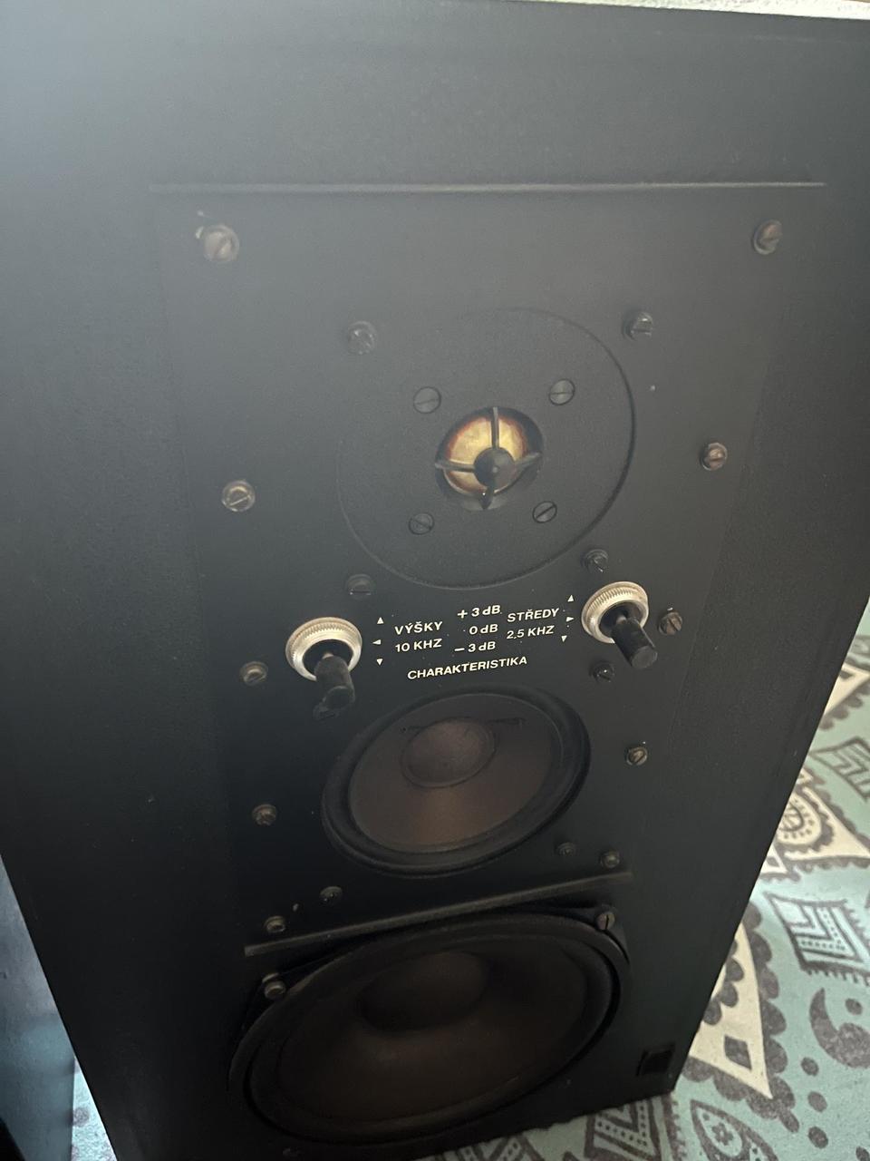 Reprobedny jsou jako nové využívaný pouze v studiových podmínkách, tak jako zesilovač. Zesilovač avšak má menší pedikurní známky na vrchní straně krytu, který ale nemají žádný vliv na technický provoz, a zvuk. Obě reprobedny mají také ze spod přilepený polystyren pro ochranu, když jsou položené. Tesla RS 338: Impedance: 4 Ohms Příkon: 30 W (hudební) Osazení: Basový reproduktor (např. ARN 6604), středový (ARZ 4604), výškový (ARV 3604) Objem: 30 litrů Typ: 3-pásmová, uzavřená ozvučnice Rozměry: 30š,30h,52v. Reprobedny mají možnost přepínatelným přepínačem, přepínat korekce pro středy, a výšky v db (decibel). Technics SU-V45A: Model: SU-V45A Typ: Integrovaný zesilovač třídy AA Roky výroby: 1987 - 1989 Vyrobeno v: Japonsku Barvy: stříbrná, černá Dálkové ovládání: ne Spotřeba energie: 420 W Rozměry: 430 x 104 x 290 mm (ŠxVxH) Hmotnost: 6,7 kg Počet vstupů: Phono (MM): 2,5 mV / 47 kOhm. Phono (MC): 170 µV / 47 Ohmů Tuner, CD, Aux, Tape 1/TAPE DA, Tape 2/EXT: 150 mV / 22 kOhm Počet výstupů: x páska páry reproduktorů Sluchátka (6,5mm jack. Trvalý zvukový výstupní výkon 20 Hz - 20 kHz 8 ohmů: Výstupní výkon nepřetržitého tónu 1 kHz 4 ohmy: 2 x 85 W V ceně potřebná kabeláž na zapojení všeho. Reprobedny mají na pevno připájený audio kabel 2x2,5mm Cu (měd). Možnost prodání jednotlivě: Reprobedny: 4000 Kč Zesilovač: 3500 Kč Cena za komplet 6500 Kč. Pouze osobní předání.