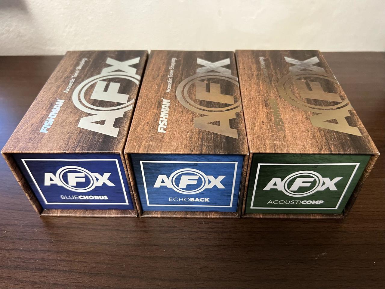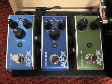 AFX ACOUSTICOMP MINI COMPRESSOR PEDAL ... 3000,- Kč, AFX BLUECHORUS MINI CHORUS PEDAL ... 2700,- Kč, AFX ECHOBACK MINI ACOUSTIC GUITAR DELAY PEDAL ... 2700,- Kč. Efektové pedály jsou v kompletním balení a použity jen párkrát v domácím pedalboardu. Komplet se slevou za 8000,- Kč.