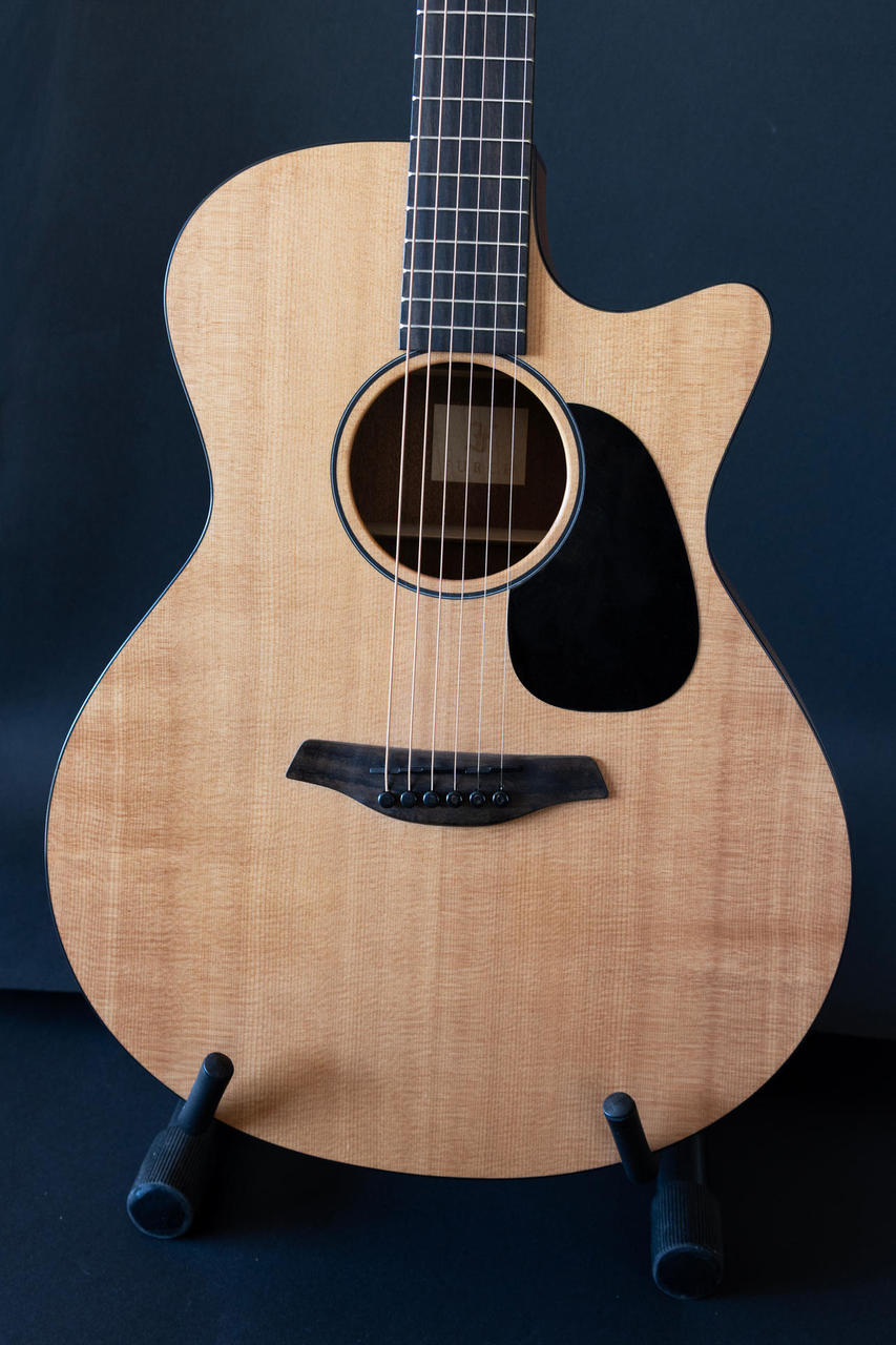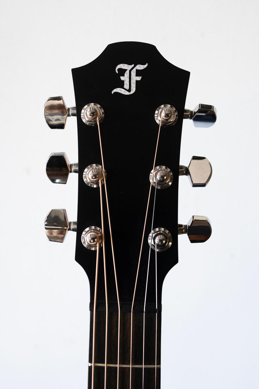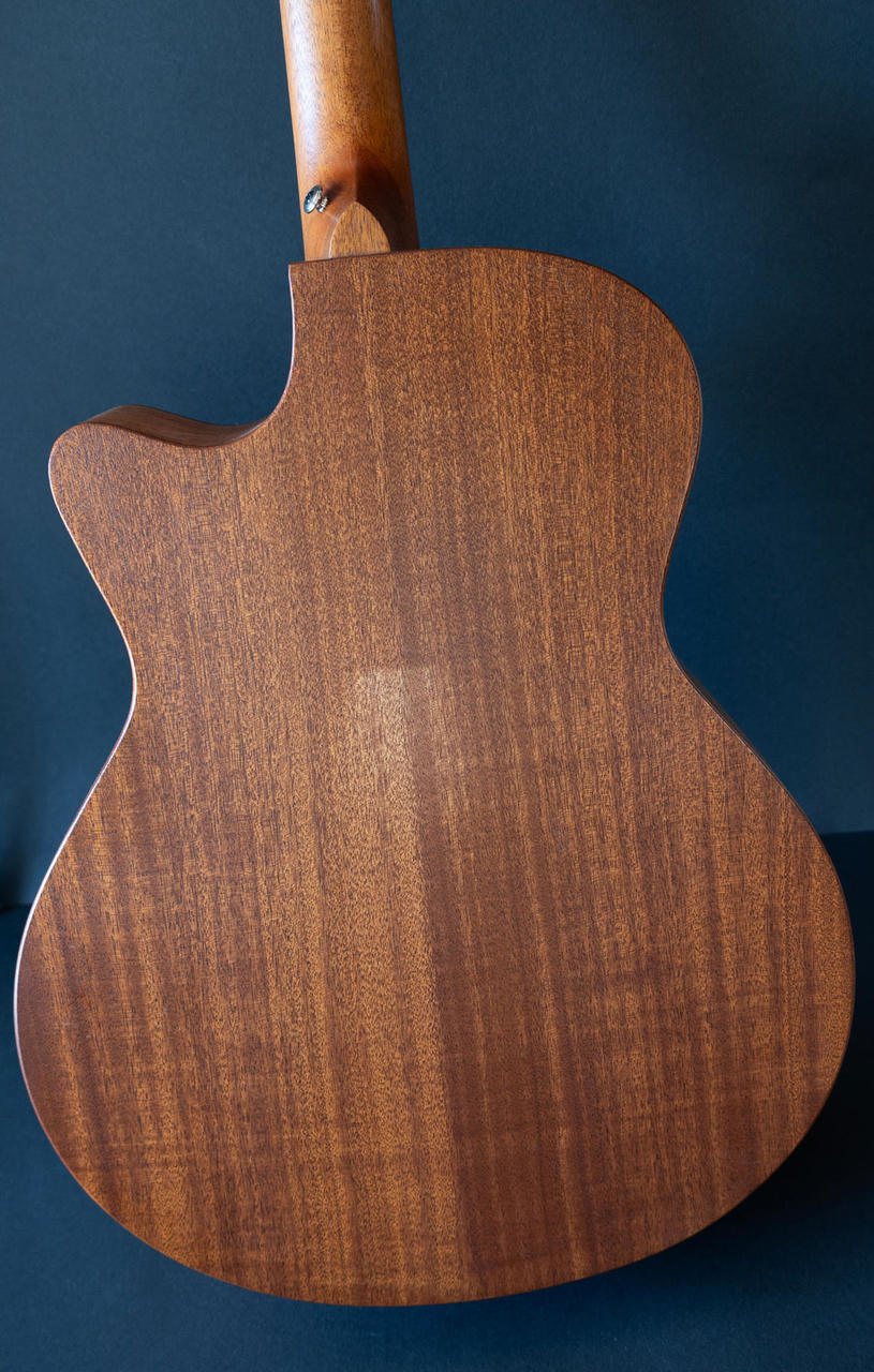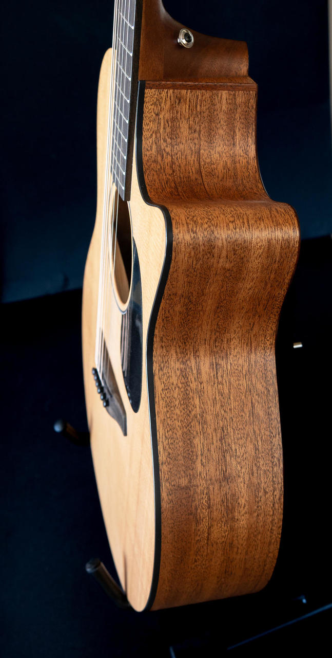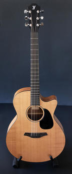 Elektrokustická kytara, typ grand auditorium, přední deska: masivní smrk, luby a zadní díl: masivní mahagon, krk: mahagon, kobylka a hmatník: eben, menzura: 650 mm, počet pražců: 20, šířka nultého pražce: 45 mm, elektronika LR Baggs Stagepro.