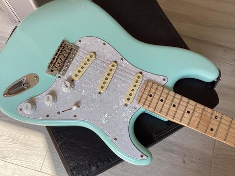 Prodám el. kytaru, variace na SUHR.Tělo olše, krk javor, lepený hmatník. Tremolo vintage + speciální kameny ze kterých nekoukají šroubky , horní i spodní závit. Masivní blok tremola, snímače , dnes již takřka nesehnatelné Fender Yosemite kombinace alnico II a IV. Graphtech TUSQ Hezký, brilantní zvuk.Více info, fota atd... na mail. Spolehlivý nástroj za vstřícné peníze. Osobně HK, Brno nebo dle domluvy , hrajeme po celé ČR. O výměny nemám zájem pouze prodej. Rychlé jednání sleva.
