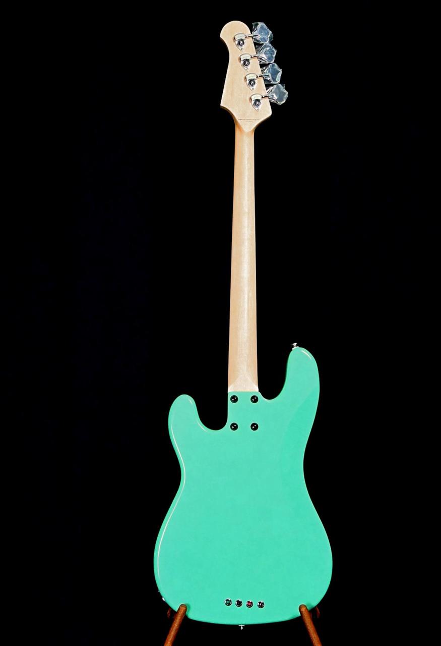 Tělo je vyrobené z masivního jasanu v nádherné barvě Sea Foam Green. Na javorovém krku, který je uchycen k tělu čtyřmi šrouby, je palisandrový hmatník s perleťovým vykládáním a bílým lemováním. Profil krku a šířka nultého pražce je jako u standardního jazz bass – 1.5″ (38.1 mm).