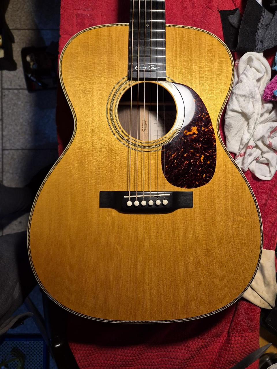 Prodám akustiku, signature model Erica Claptona. Rok výroby je 2016. Kytara je krásně vyhraná, v rámci zlepšení zvuku jsem vyměnil kobylku a kolíky za kost. Jsem druhý majitel, původně byl pod kobylkou snímač - nyní je demontovaný, není problém jej zpět nainstalovat. Nese známky používání, jedná se ale jen o malé kosmetické defekty.