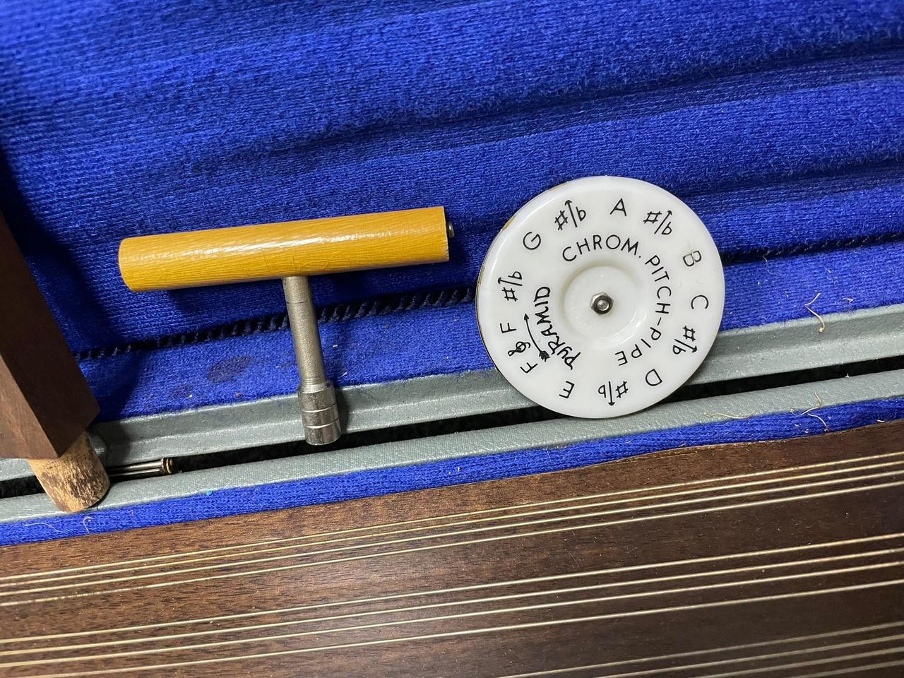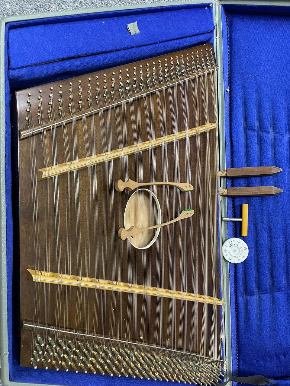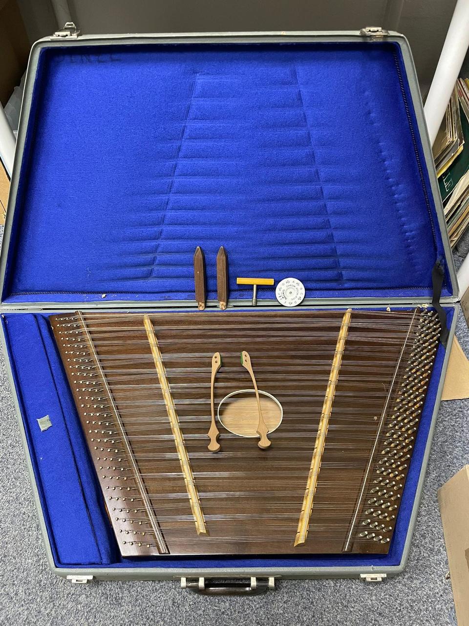 Prodám přenosný cimbál, pravděpodobně z 60 . let. Nástroj je včetně originálního kufru. Cimbál je zachovalý a je včetně, not ,ladičky, podpůrných nožiček.