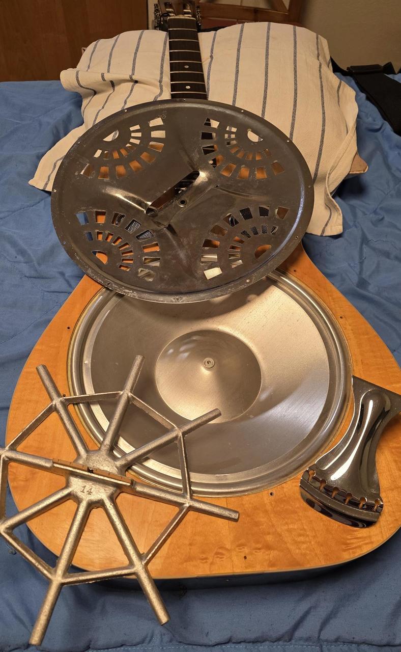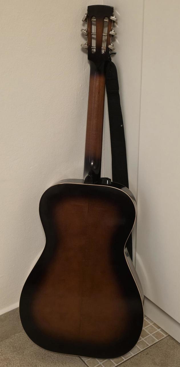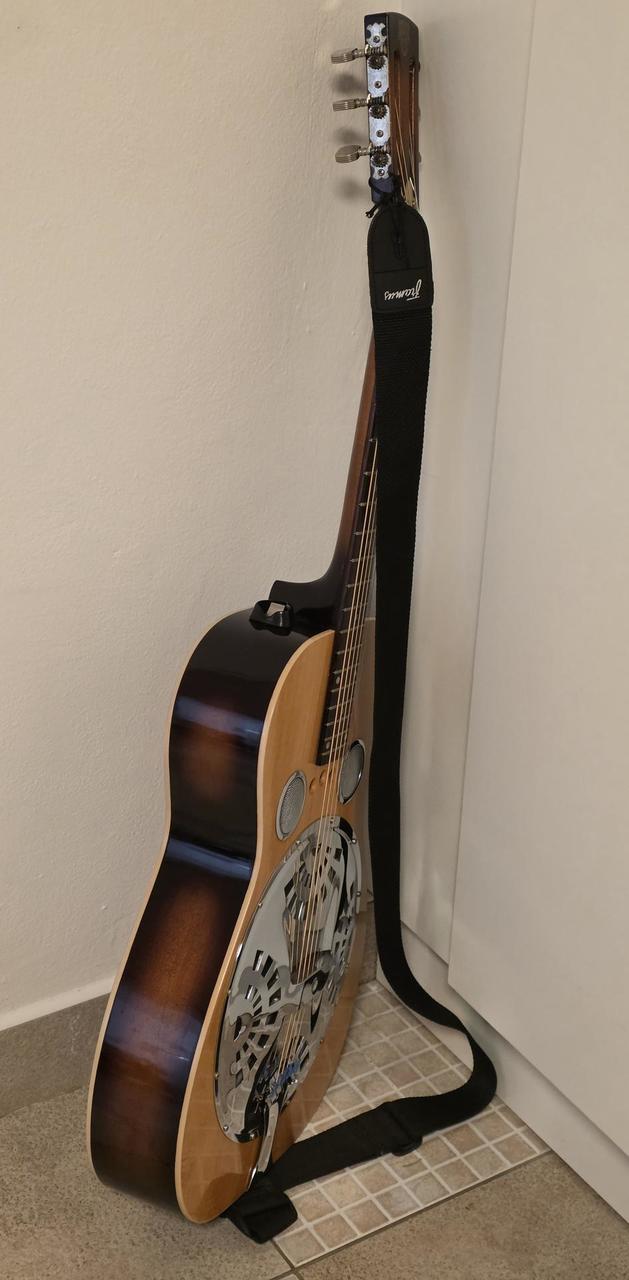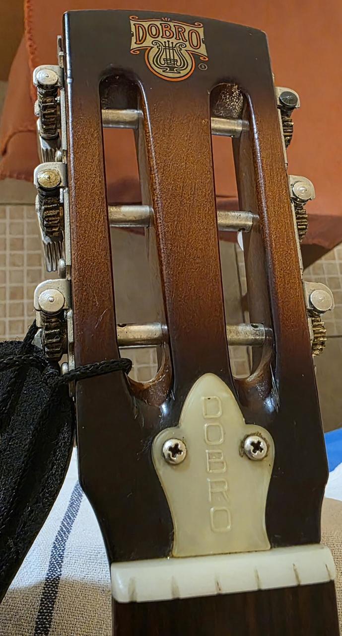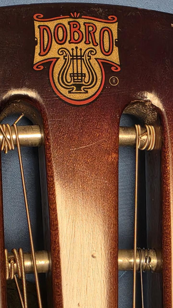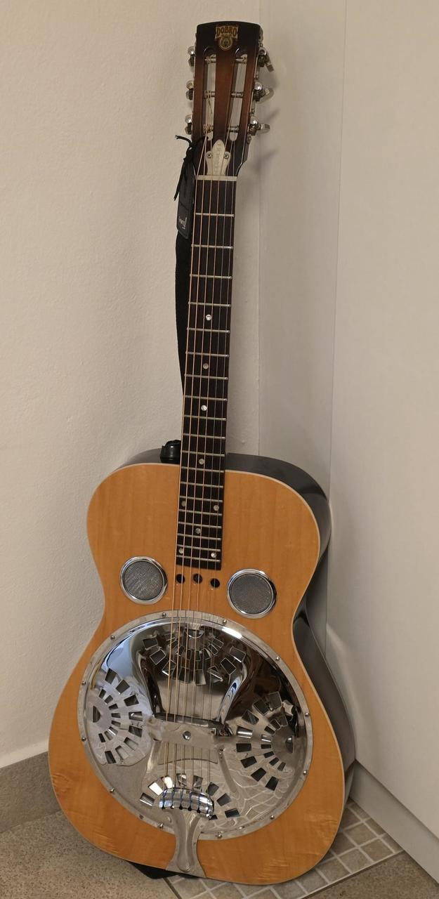 Model Dobro OMI 60DS • „Roundneck“ (kulatý krk) • Materiál: Javorová překližka s charakteristickým žlutým (amber) topem a tmavým sunburstem na bocích a zádech. Nástroj velmi zachovalý, lak má pěkný lesk, rezonátor (pavouk a kryt) není promáčknutý. Loga jsou nepoškozená. Aktuální tržní hodnota (v ČR/Evropě se pohybuje kolem 32 tis.) Jde o verzi Roundneck (je velmi žádaná v bluegrassu), Dřevěné tělo OMI Dobro má teplejší, měkčí tón než kovové resonátory, což je ideální pro bluegrass a country doprovod. Na kulatém krku se hraje buď klasickým způsobem s prsty, nebo technikou slide. Tělo: Laminovaný javor - vrchní deska, záda, luby Krk: Javorový, kulatý profil (roundneck) - klasický pro hru prsty a slide Hmatník: Palisandr Mensura: Nástroj je pro otevřené ladění, nejčastěji G-B-D-G-B-D nebo podobné varianty používané v dobro stylu. Používal i Mark Knopfler, když spolupracoval s Jerry Douglasem (Dobro na "Brothers in Arms") Je to kvalitní hráčský nástroj s klasickým zvukem bluesgrassu 80. let Proč je cena taková? 1. Značka: "Dobro" od OMI je v komunitě hráčů ceněno mnohem více než moderní levné asijské kopie (např. Epiphone nebo levné Gretsch). . Původ: Je to poctivý americký nástroj z Huntington Beach v Kalifornii. DOBRO s výrobním číslem 8 1250 2D byl vyroben v roce 1982. Vysvětlení sériového čísla: 8 = označuje dekádu 1980s 1250 = pořadové číslo nástroje v daném roce výroby = poslední číslice roku, tedy 1982 D = označuje dřevěné tělo (wood body), Tento systém číslování používala společnost OMI , která vyráběla nástroje DOBRO v období 1980-1988. Je to nástroj starý přibližně 44 let z éry OMI, což je ceněné období v historii značky DOBRO. V roce 1998 značku převzala společnost Gibson a začala používat jiný systém číslování. ---------------------------- Neoriginalní tvrdý kufr za příplatek 2000 Kč