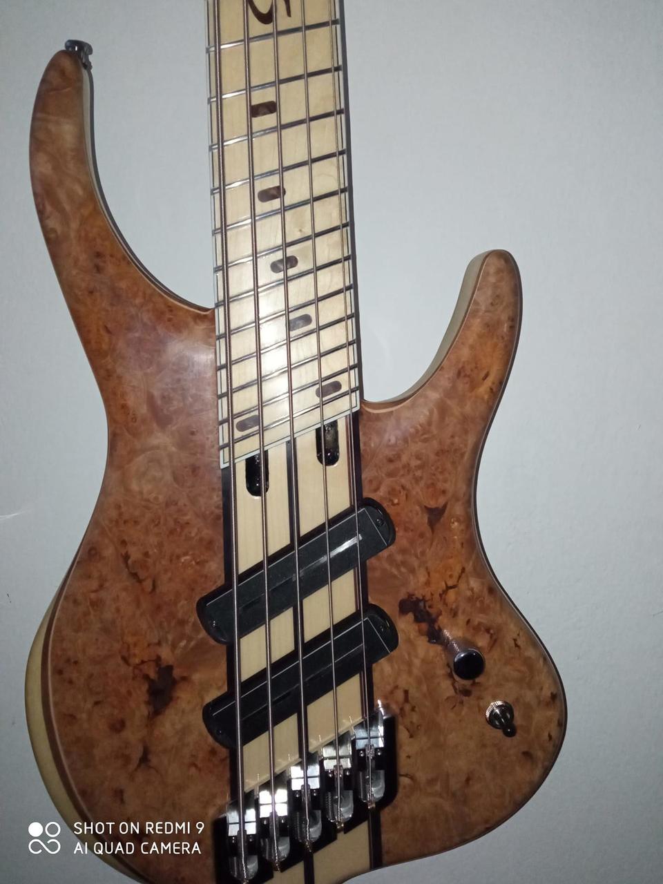 Kdo zná, ten ví. Pasivní 5 ti struný multiscale luxusní nástroj, výroba Honza Růžička, zakázková výroba. Božský zvuk do tvrdších stylů - hard rock, metal apod. Prodávám bohužel ze zdravotních důvodů. Bude lepší, když bude v rukou někoho zdravého, než aby mi tady visela na zdi. Cena dohodou.