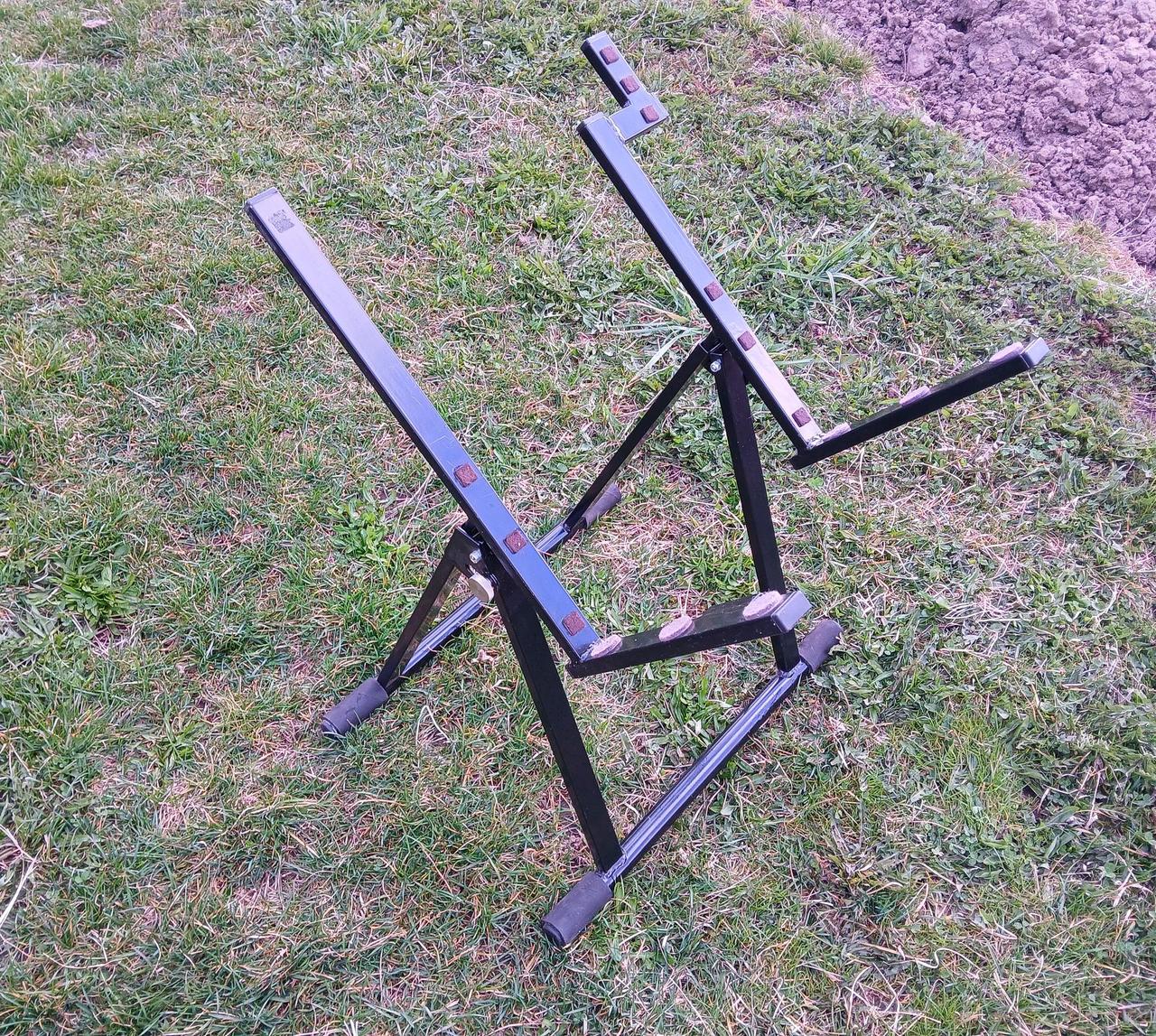 Prodám kvalitní stojan na kombo s pevnou a stabilní konstrukcí. Povrch je ošetřen odolným černým práškovým lakem, doplněn o nerezové stavěcí šrouby. Stojan má také přípravu na držák mikrofonu.