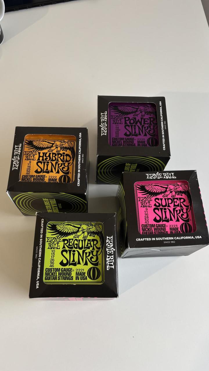 ERNIE BALL Regular Slinky - PRODÁNO ERNIE BALL Hybrid Slinky - 480,- (4 ks) ERNIE BALL Super Slinky - 1200,- (10 ks) ERNIE BALL Power Slinky - PRODÁNO Preferuji osobní předání v Praze.