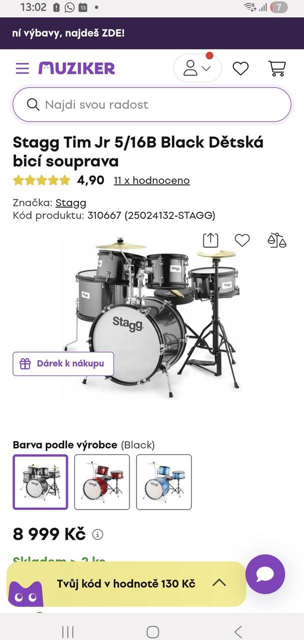 PRODÁM TOP STAV Stagg Tim Jr 5/16B Dětská bicí souprava