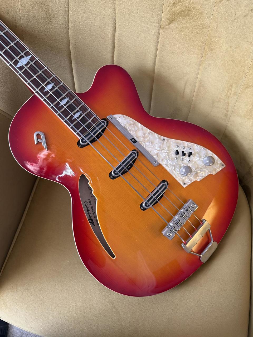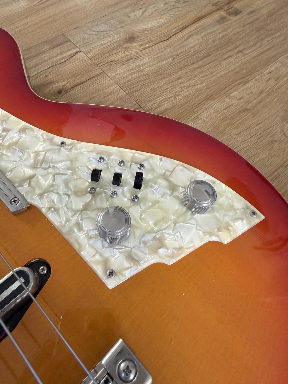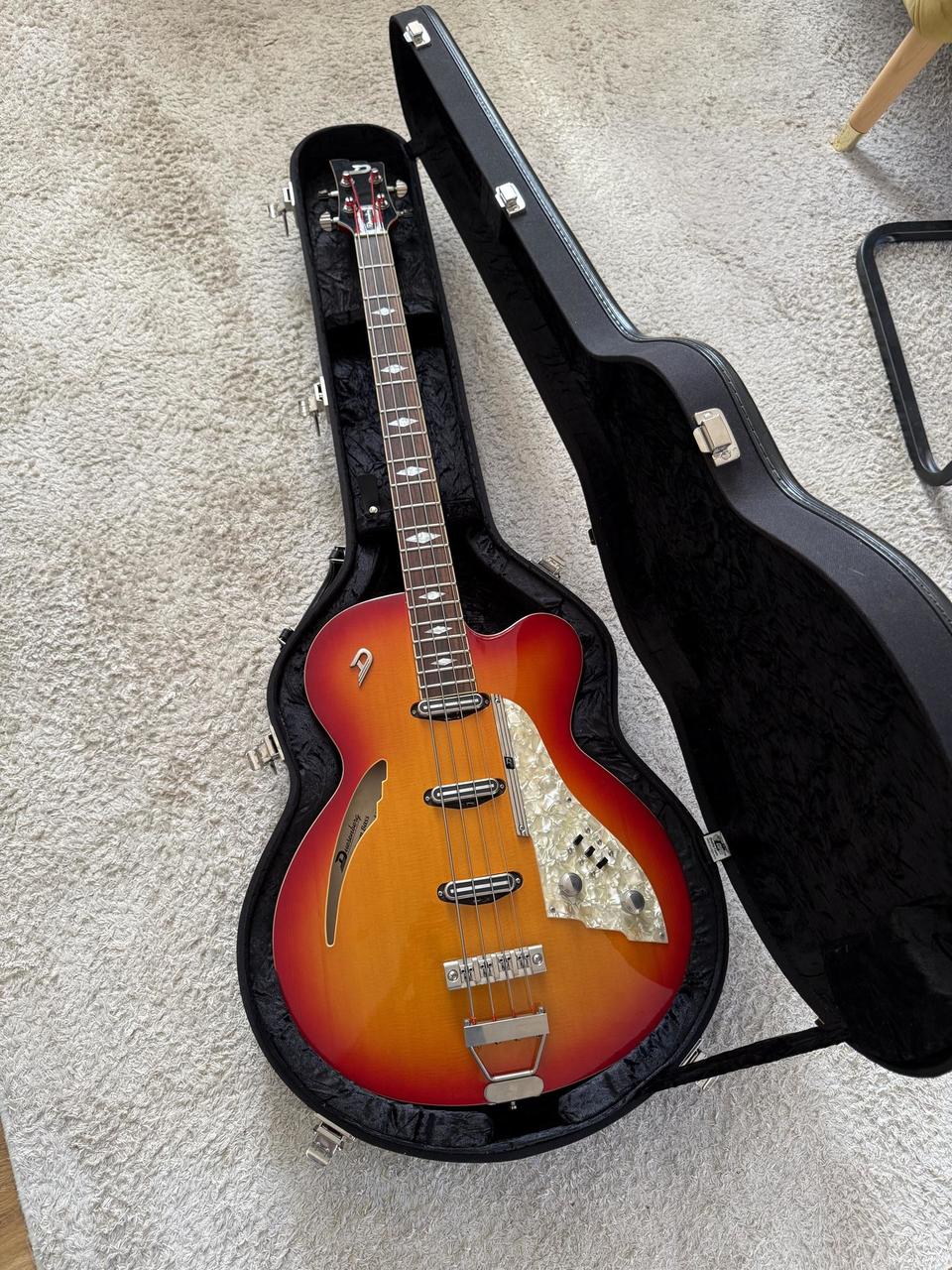 Specs: - Tělo: Pololubové se sustain blokem; vrchní deska laminovaný smrk, záda a luby žíhaný javor. - Krk: Javor (z jednoho kusu) - Hmatník: Indický palisandr, rádius 12", perleťové značky - Menzura: 34" (864 mm) – longscale. - Snímače: 3× Duesenberg DS Alnico-Blade Single Coils. - Elektronika: Pasivní (Volume, Tone). Každý snímač má vlastní vypínač on/off. To umožňuje míchat libovolné kombinace a dosáhnout zvuku ve stylu P-Bass, J-Bass a mnoha dalších. - Hardware: Nikl, ladicí mechaniky Duesenberg Z-Tuner - Včetně originálního pevného kufru Duesenberg. Výměna možná za zajímavý Fender (oid), doplatky oběma směry možné.