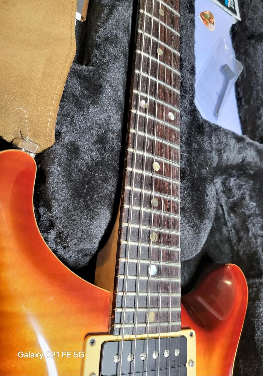 Táto gitara je o tóne, hrateľnosti a pohodlí s klasickým vzhľadom. Tento skorý PRS z roku 2001 je jeden z tých naozaj dobrých. Pekná zmes LP a Strat. Mahagónové telo s flambovaným javorovým vrchom .