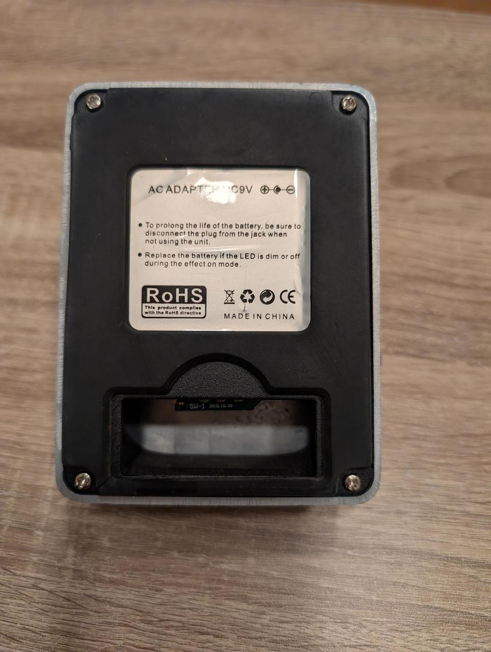 Dělá přesně to, co by měl. Nabízí zpoždění 50-600 ms (ovladač Time), dalšími dvěma ovladači lze nastavit počet opakování (Repeat) a mix čistého a upraveného signálu (Level). Je používaný a je to na něm znát. Zespodu jsem ztratil krytku 9V baterky (díra je vidět na fotce) a uvnitř chybí i kabel k připojení 9 V baterky. Efekt je tedy možné napájet jen ze zdroje. Funkčně je naprosto v pořádku, je to držák. Mohu poslat přes Zásilkovnu za 89 Kč nebo za 115 Kč na dobírku. Případně nabízím osobní předání na Praze 5 nebo Praze 13.