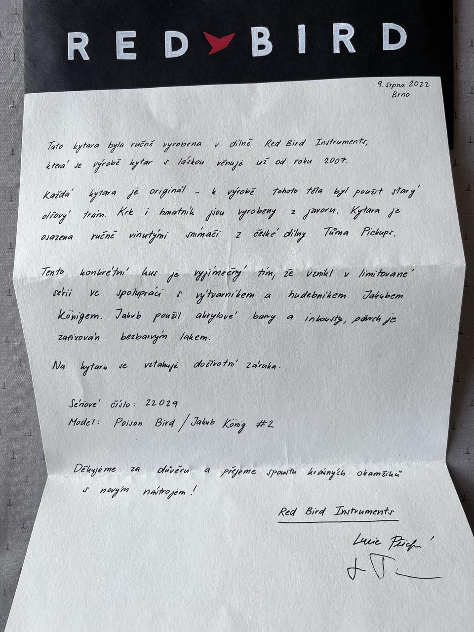 Prodám krásnou kytaru z brněnské dílny Red Bird Instruments pomalovanou Jakubem Königem. Bohužel ji nevyužiju tak, jak by si zasloužila. Veškeré podrobnosti o nástroji viz přiložený dokument ve fotkách.