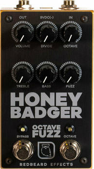 Redbeard Effects sa inšpirovali veľmi obľúbeným konceptom Octave Fuzz. Sú fanúšikmi hlbokých a špinavých gitarových/basových tónov, takže pridanie oktávy do drsného fuzz obvodu sa zdalo byť jasnou cestou. Ale počkajte, je toho viac! Vďaka interaktívnemu gombíku „DIVIDE“ vám Honey Badger umožňuje prelínať sa medzi kombináciou -2 a -1 oktávy nadol pre dokonalý zážitok z tonálneho podzemia. Rozbite všetko to gýčové, subby šialenstvo na vrchole drsného, inšpiratívneho a interaktívneho fuzz obvodu a získate skutočne jedinečný efekt, ktorý neberie na nič ohľad. Použite Honey Badger ako spaľujúci fuzz, ktorý odlíši váš tón, alebo v kombinácii s integrovaným Octave efektom pre veľké množstvo zábavy a kreativity. Efekt je v 100% stave ako nový.
