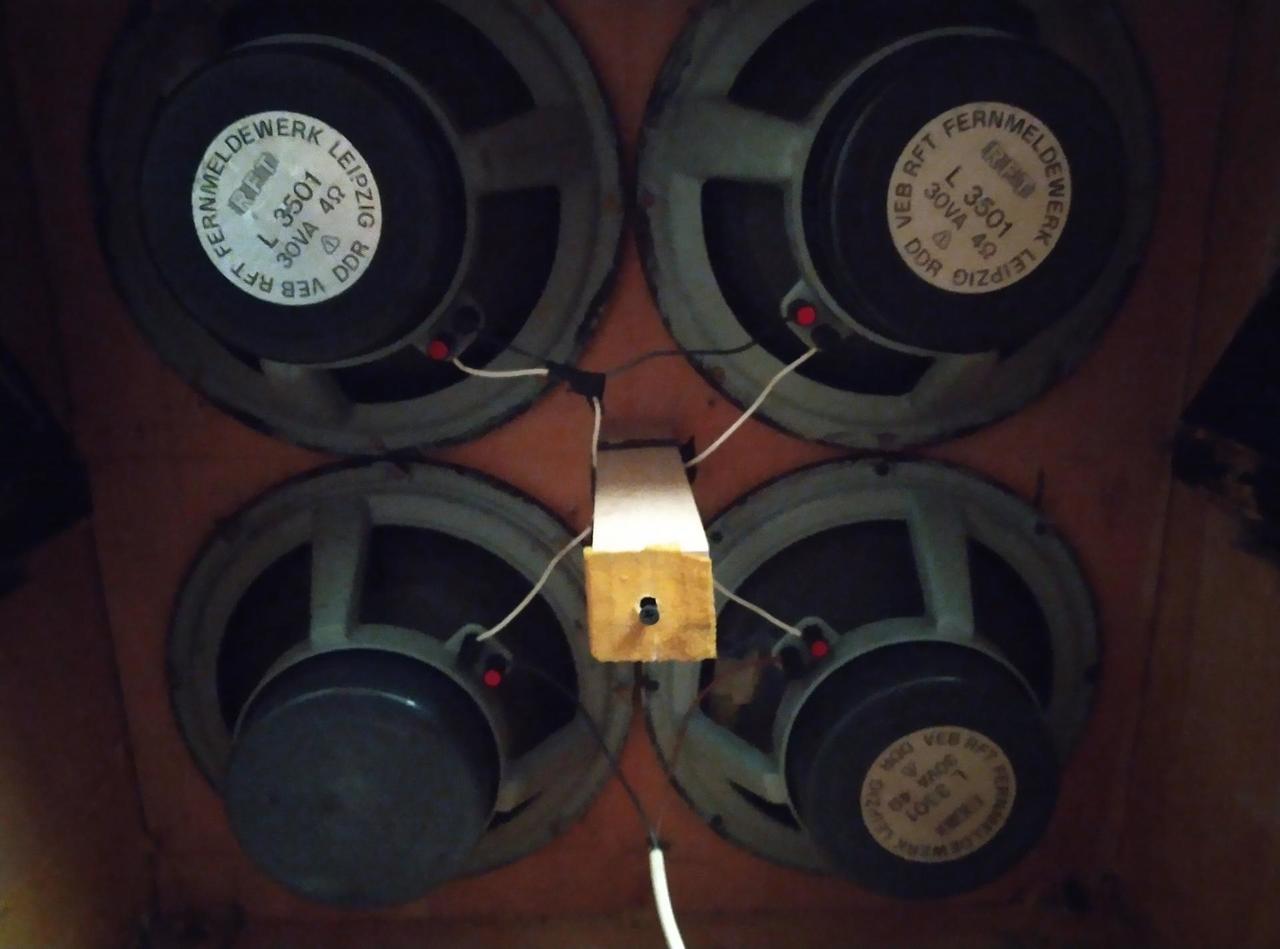 Jeden reproduktor je lepený iz. foto, vzhledem k stáří slušný stav. Velké, těžké, pouze osobní odběr Třinec