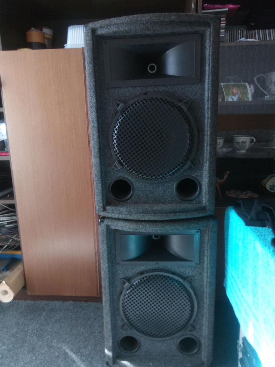 Připojení na speakony. Trapézový tvar. Zvuk velmi dobrý používaný převážně jako odposlechy. 5000 kč. za oba.