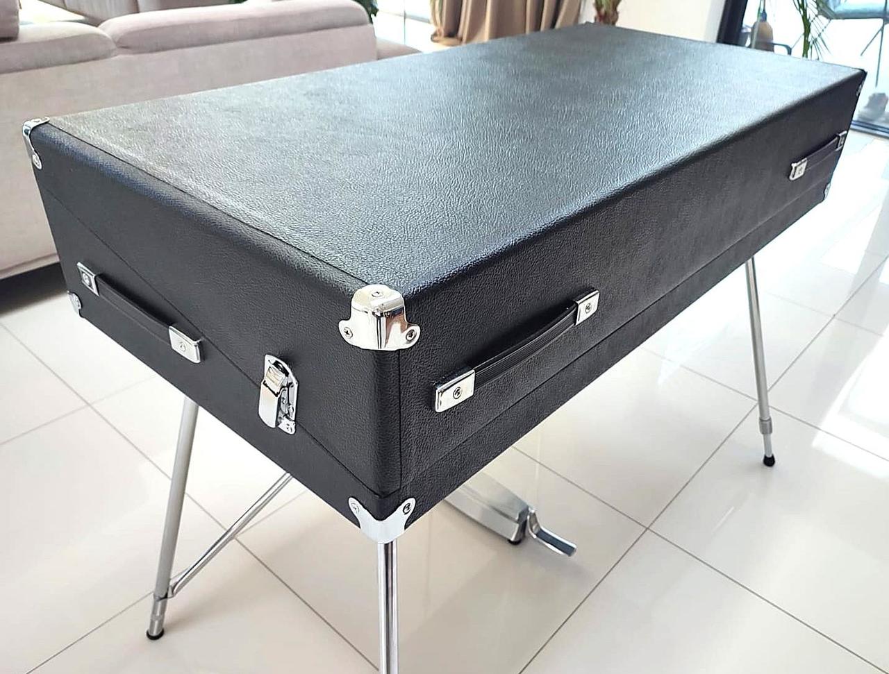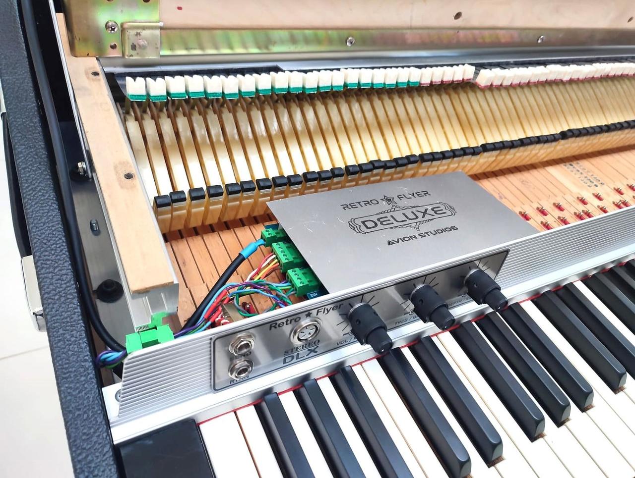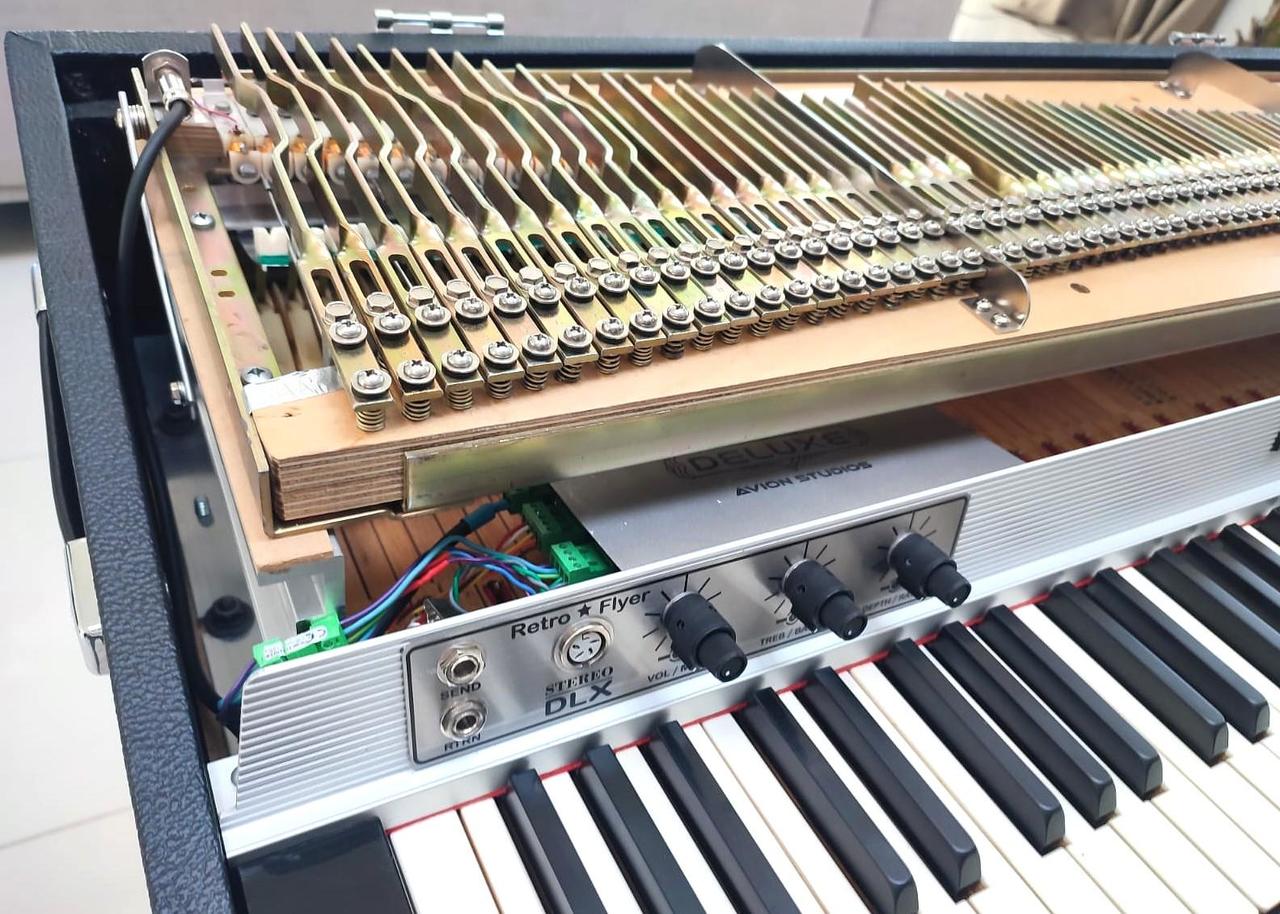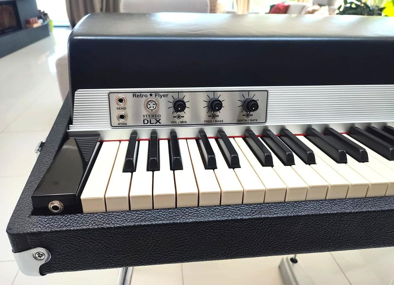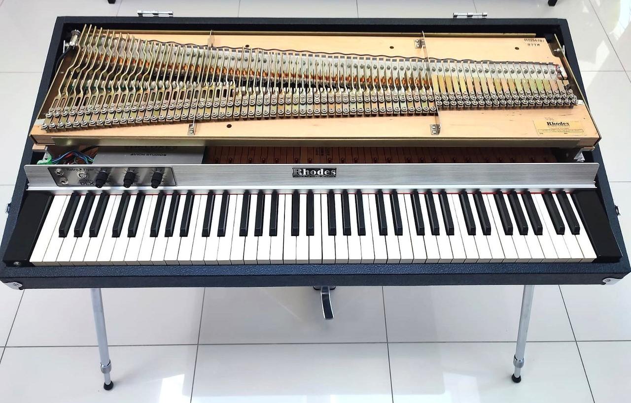 Dokonalý Rhodes po technickej, zvukovej a estetickej stránke. Zberateľský a exkluzívny stav. Tento Rhodes má úplne nové nohy, sustain pedál a všetko konanie ( pôvodne som ho kúpil bez nôh a sustain pedálu ). Originál gumičky na kladivkách z roku 1976 sú ako nové, lebo na nástroj sa nehralo. Má nový Tolex – koženku.