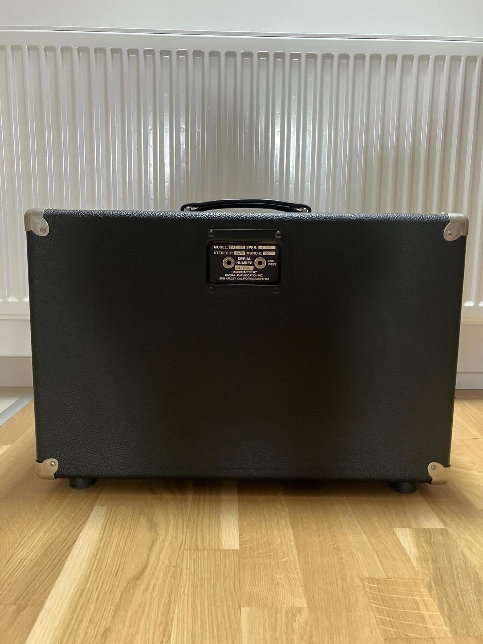 Perfektní bedna, bez viditelných známek používání, přepravní obal v ceně. Není osazena T 75, jak je uvedeno na štítku, ale je v ní EVM 12l oem - legendární, těžko sehnatelný, vintage reprák od Electro - voice. Díky němu má reprobox velmi pevný, konkrétní zvuk a je velmi hlasitý, bez problémů se vyrovná klasickým 4x12 bednám. Samotný reproduktor nikdy nebyl opravován a vzhledem k věku je ve výjimečně dobrém stavu. Box má dostatečný headroom a je k němu možné připojit v podstatě jakýkoliv lampový zesilovač. Rivera takto osazený box používala jako referenční, viz video. Prodávám z důvodu nevyužití, hraju už jen na komba.