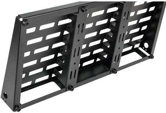 Good Quality Velcro applied. For approx. 9 to 18 effects pedals (depending on size) Torsion-resistant and lightweight aluminum construction Groove design for easy pedal installation Mounting holes on the right side for RockBoard LED light (not included) Made of cold-rolled aluminum sheet Additional reinforcement with a U-shaped strut 10° beveled plate surface without welds Slots for patchbay RockBoard modules (not included) Robust black powder-coated surface Dimensions (W x D x H): 722 x 330 x 37 - 71 mm including rubber feet Board weight: 3.0 kg Gig bag weight: approx. 5.5 kg
