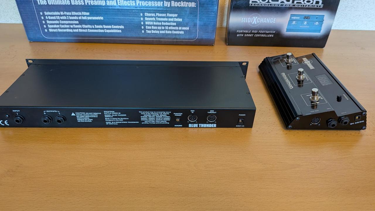 Prodám Rocktron Blue Thunder předzesilovač a efektový procesor pro baskytaru a lze použít i pro kytaru. Obsahuje 4 pásmový EQ, Hi pass filter, Hush noise reduction, distortion, compressor, delay, reverb, tremolo, phaser, flanger, chorus, modulaci reproduktorů a kabinetů, vše lze uložit až do 128 presetů. K ovládání na pódiu slouží přiložený Rocktron midi exchanger. Stav jako nové. Pořizovací cena 11 300 Kč, nyní 5 900 Kč.