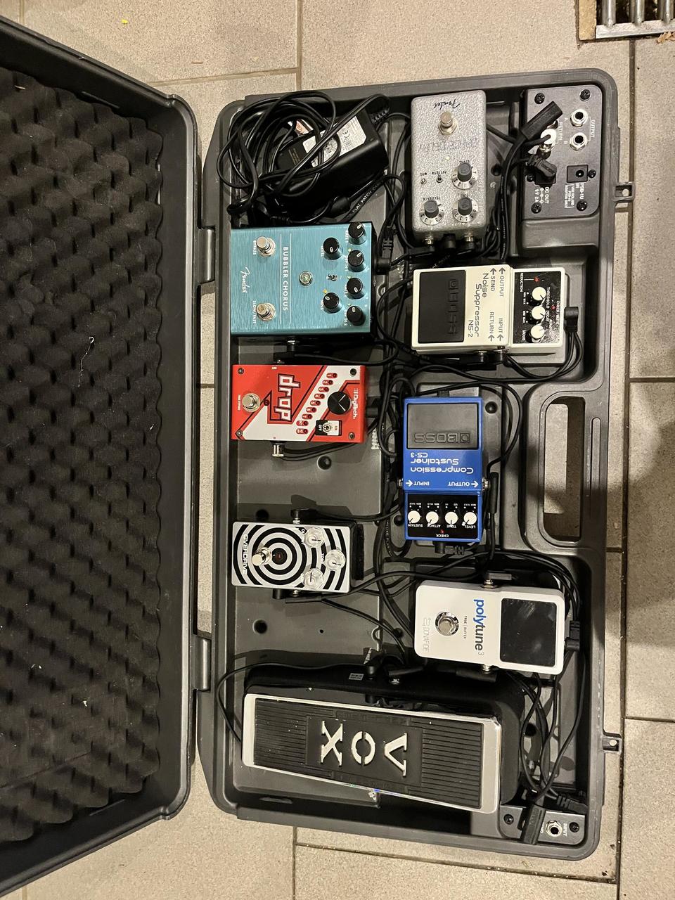 Prodám tento vysoce odolný a praktický pedalboard od značky BOSS. Je to ideální řešení pro kytaristy, kteří chtějí mít své efekty v bezpečí a bleskově připravené k hraní. Hlavní přednosti: Vše v jednom: Integrovaný "junction box" pro vstupy a výstupy (Input, Send/Return, Output A/B) – zapojíte se do kufru a nemusíte lézt přímo do pedálů. Maximální ochrana: Robustní konstrukce z litého plastu, která vydrží i drsné zacházení na cestách. Součástí je originální adaptér BOSS a kompletní kabeláž pro napájení vašich efektů (daisy chain). V kufru chybí původní pěnová vložka. Je to ideální pro někoho, kdo si chce vnitřek vyložit po svém (např. kobercem a suchým zipem), nebo si dokoupit náhradní tvarovatelnou pěnu (stojí cca 600 Kč).