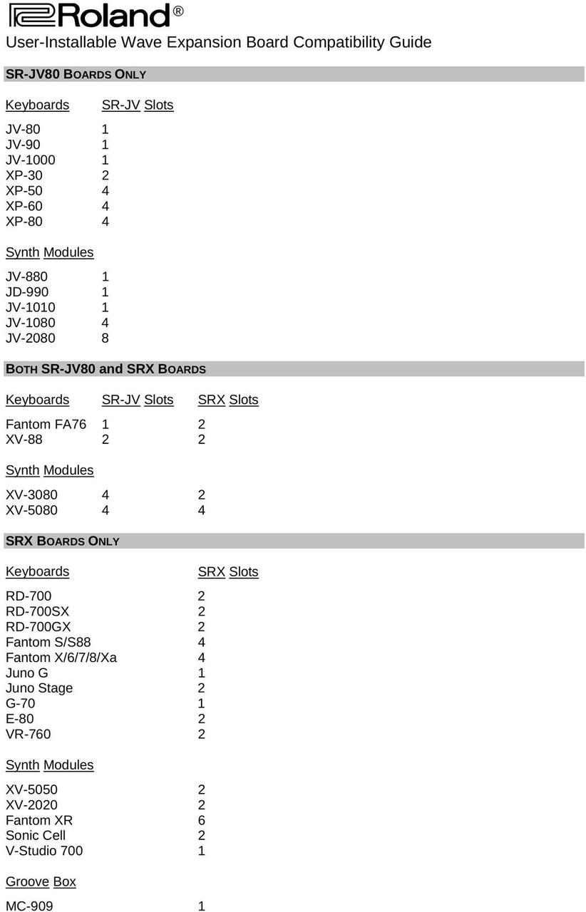 Roland SRX-02 Piano - sleva viz text