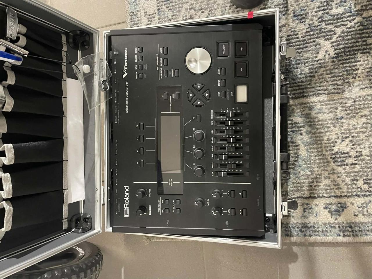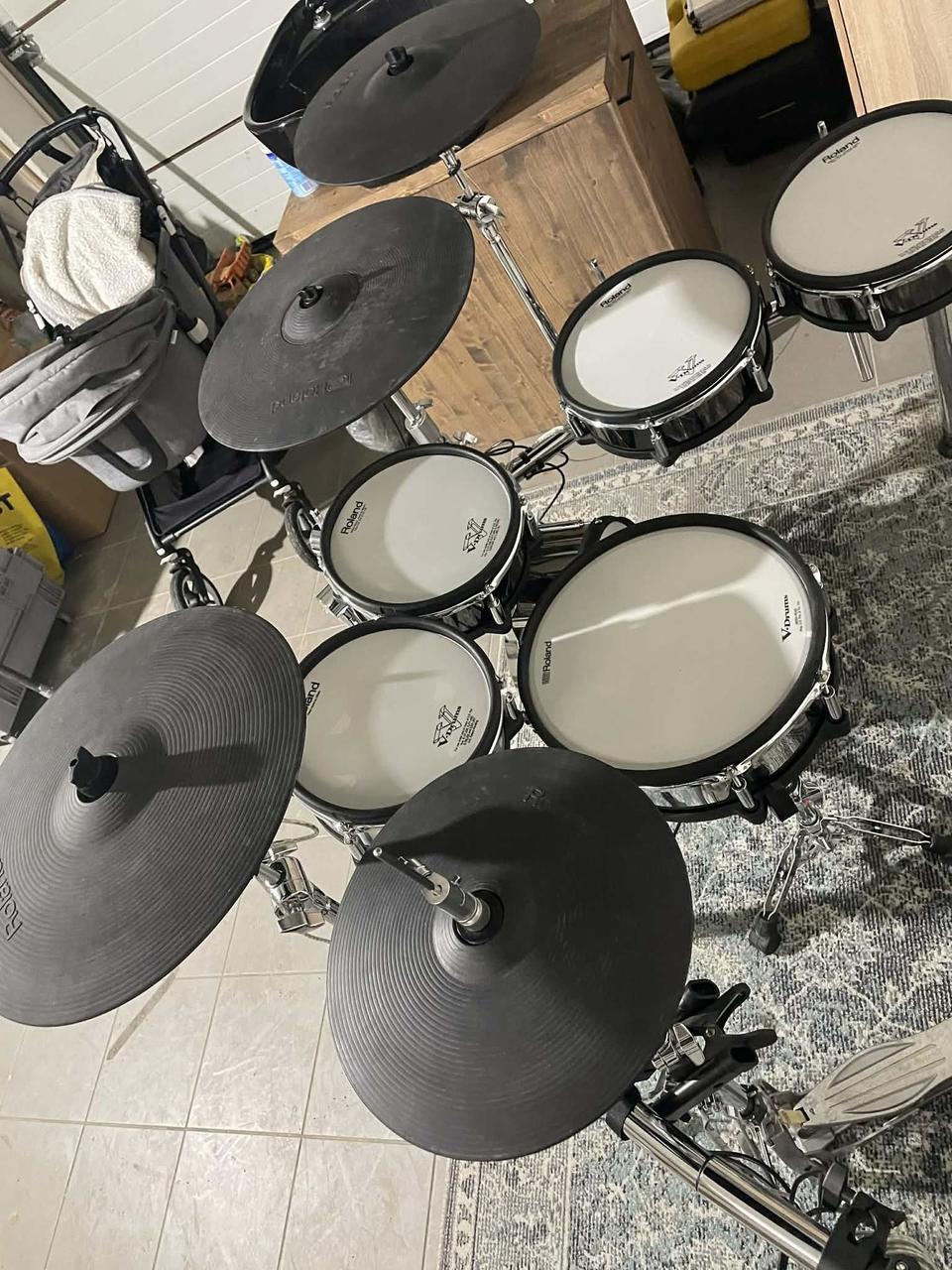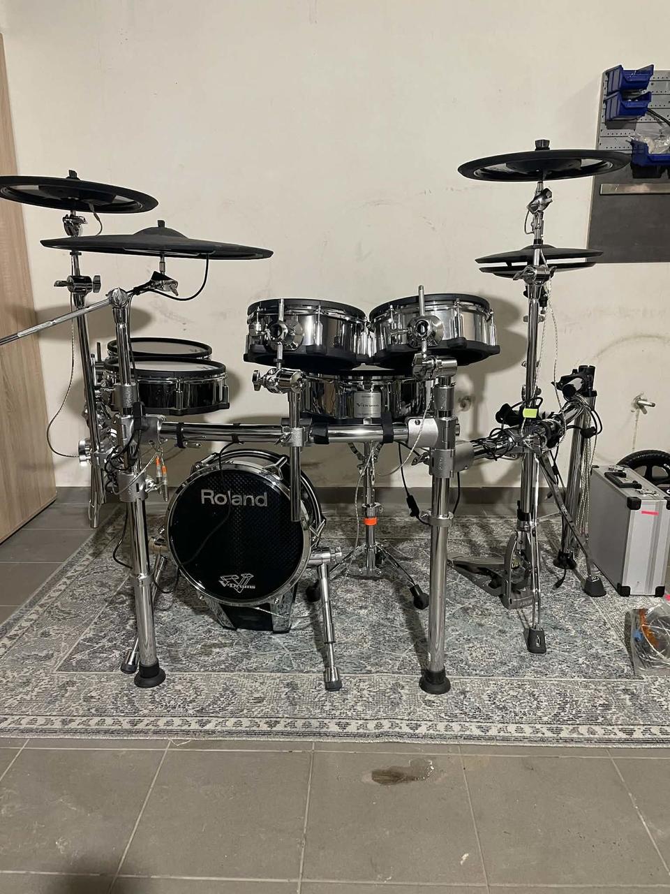 modul TD-50: upgradovaný na TD-50x. umožňuje import vlastních WAV samplů z SD karty. SD karta součástí!! * Digitální Snare (PD-140DS) * Digitální Ride (CY-18DR) * Pady a činely: Souprava dále obsahuje hi-hat VH-13, crash činely CY-14C a CY-15R, jeden rack tom PD-108-BC a dva floor tomy PD-128-BC. * Jeden rack tom PD-108 dokoupen zvlášť, ma stříbrnou barvu * Hi-hat a snare stojan nejsou součástí * Kovová rampa s rozvodem kabeláže CENA DOHODOU