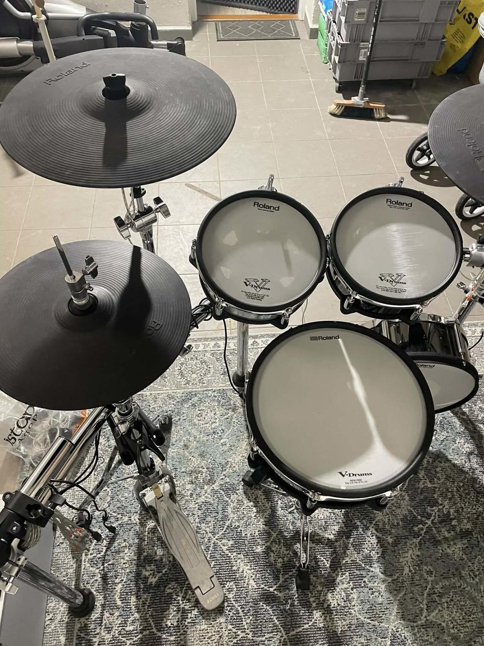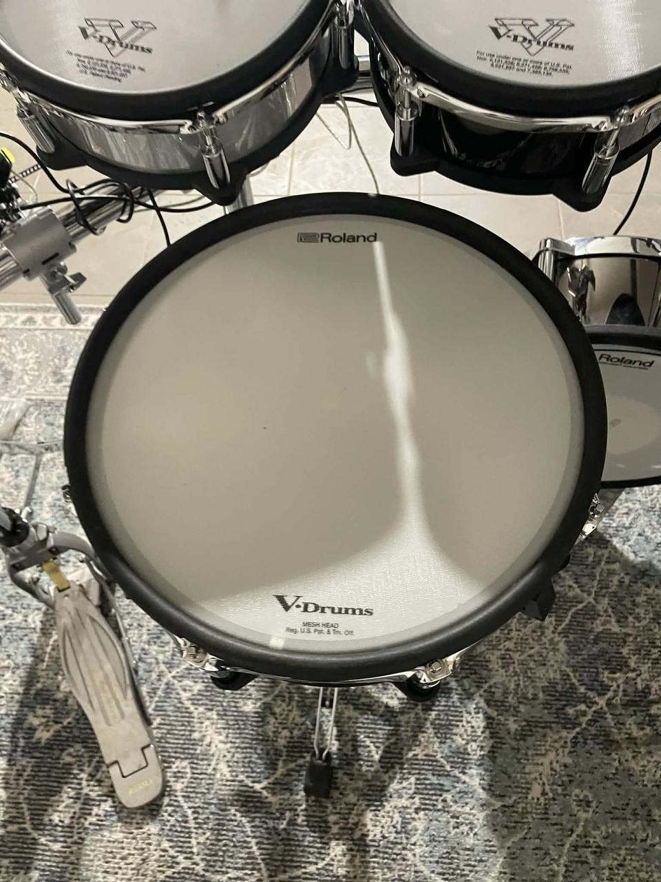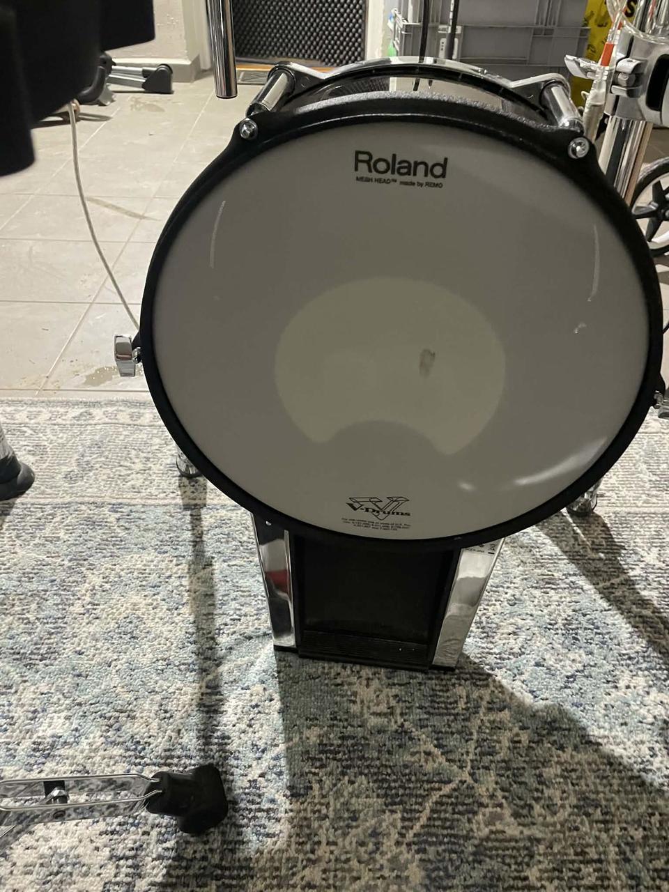 modul TD-50: upgradovaný na TD-50x. umožňuje import vlastních WAV samplů z SD karty. SD karta součástí!! * Digitální Snare (PD-140DS) * Digitální Ride (CY-18DR) * Pady a činely: Souprava dále obsahuje hi-hat VH-13, crash činely CY-14C a CY-15R, jeden rack tom PD-108-BC a dva floor tomy PD-128-BC. * Jeden rack tom PD-108 dokoupen zvlášť, ma stříbrnou barvu * Hi-hat a snare stojan nejsou součástí * Kovová rampa s rozvodem kabeláže CENA DOHODOU