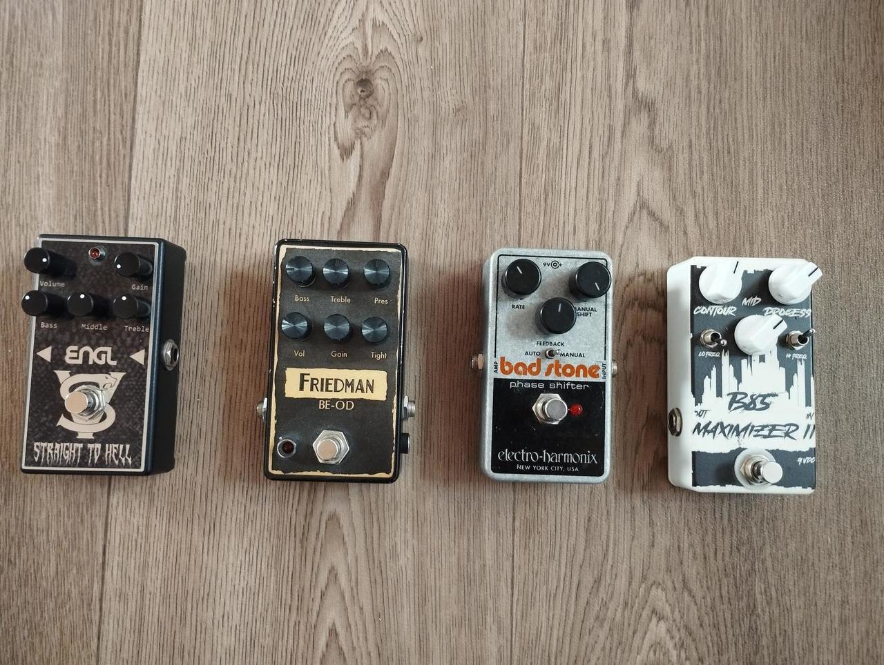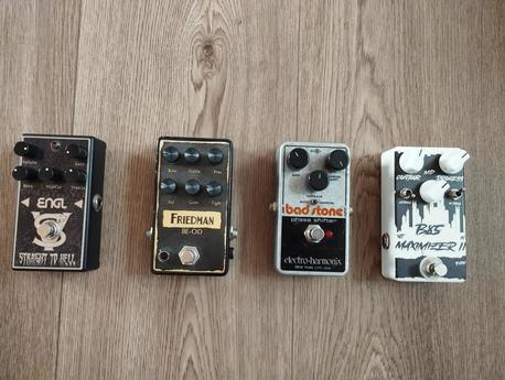 Engl Straight to hell, signature pedál Victor Smolski 2000kc Friedmann BE-OD overdrive kopie 1300kc EHX phase shifter Bad stone 1200KC/prodáno B85 Maximizer, kopie BBE Sonic stomp s pár vychytávkami navíc 1500kc