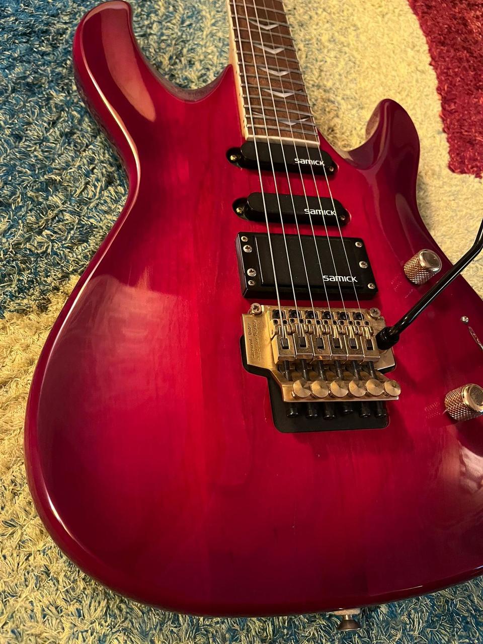 Klíčové série a modely 90. let Superstraty (série K a R): Modely jako KR-660 (často v "mramorovém" finiši) nebo KR-570 byly populární mezi metalovými hráči díky Floyd Rose tremolům a rychlým krkům. Kvalita a sběratelská hodnota Kytary Samick z počátku 90. let (označené nápisem "Samick" na hlavě, nikoliv jen logem "S") jsou dnes považovány za vynikající poměr ceny a výkonu. Korejská produkce z této éry bývá často hodnocena výše než pozdější modely z Indonésie, kam se výroba začala přesouvat po roce 1992. Kytara je po servisu, krk, pražce srovnané a vyleštěné, seřízená, bez investic, nové struny. Za málo peněz hodně muziky. Rozumné dohodě se nebráním. Jak hraje viz video.