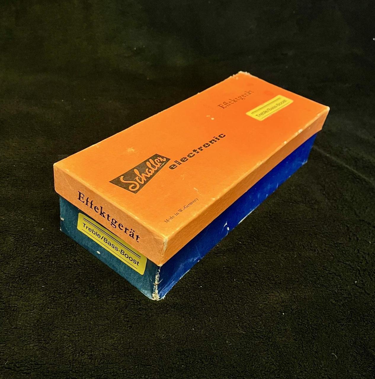 Na predaj gitarový efekt SCHALLER. Výrobca: Schaller Electronic GmbH. Made In GERMANY. Rok produkcie: 1970´s. Druhá výrobná séria. Efekt: TREBLE – BASS Boost / SWELL – Volume. Efekt v TOP 100% funkčnom a originálnom stave v originál balení !!! Nikdy nepoužívaný – uloženka – NOS (New Old Stock). Autentický zvuk 60&70-tych rokov typický pre BEAT-ovú éru Československých kapiel a rovnako zahraničných ako napr. nemeckých The Rattles, Lucifer´s Friend, Embryo, Kraftwerk … Efekt je založený na kópii legendárneho VOX Treble – Bass boost, ktorý pridáva zisk (skreslenie) a ponúka 5 stupňov nastavenia frekvencií od Treble po Bass. Eventuálne sa rovná efektu Rangemaster Treble Booster. Pri práci s Volume potenciometrom gitary sa zvuk krásne dynamicky čistí. Vhodný do štúdia, live použitie ako i pre zberateľa.