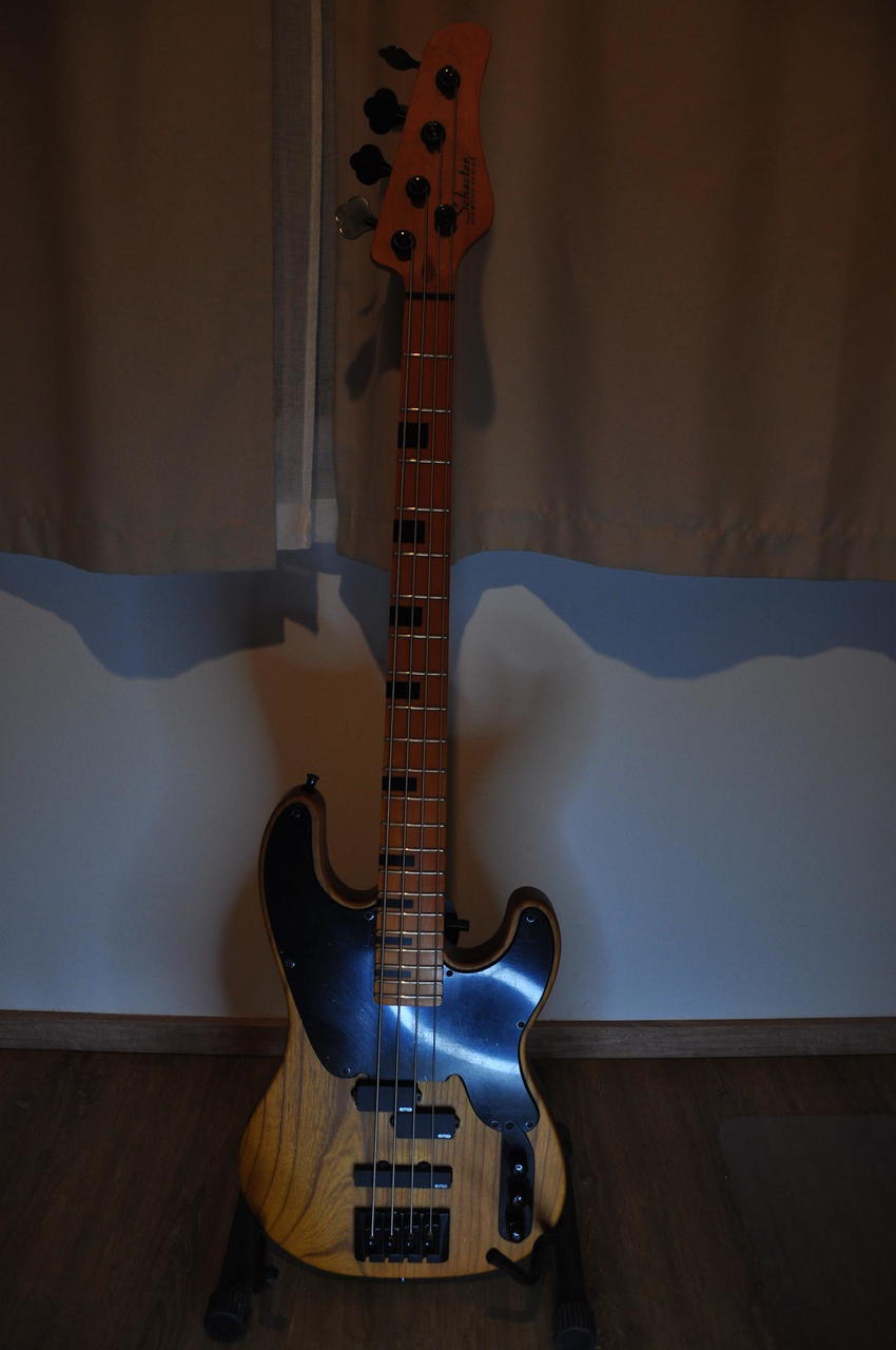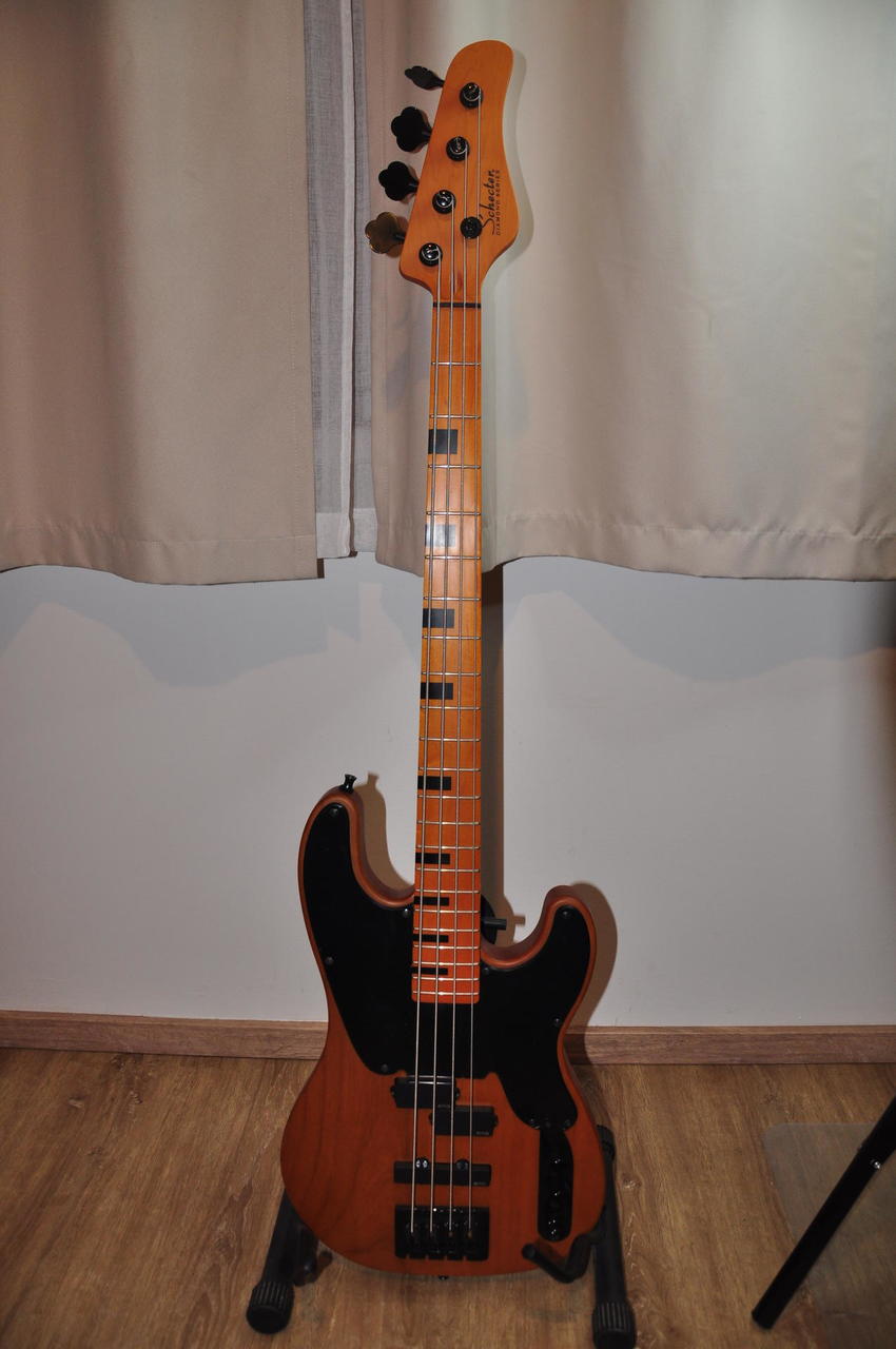 Prodám aktivní baskytaru Schecter Model-T Session. Nástroj byl použit pouze na pár zkoušek a jeden koncert, stav je tedy zánovní, bez známek opotřebení. Jedná se o velmi univerzální baskytaru, která se prosadí jak v tvrdších žánrech, ale třeba i v jazzu. Přidám i case.