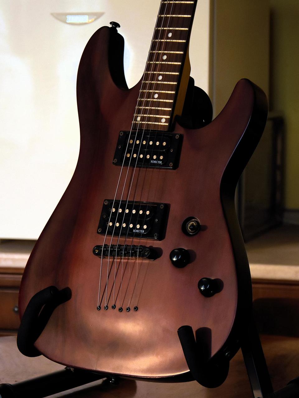 Schecter Omen-6 – moderní nástroj ideální pro rock a metal, ale zvládne i další styly. Kytara je ve velmi dobrém stavu, plně funkční a připravená na hraní.