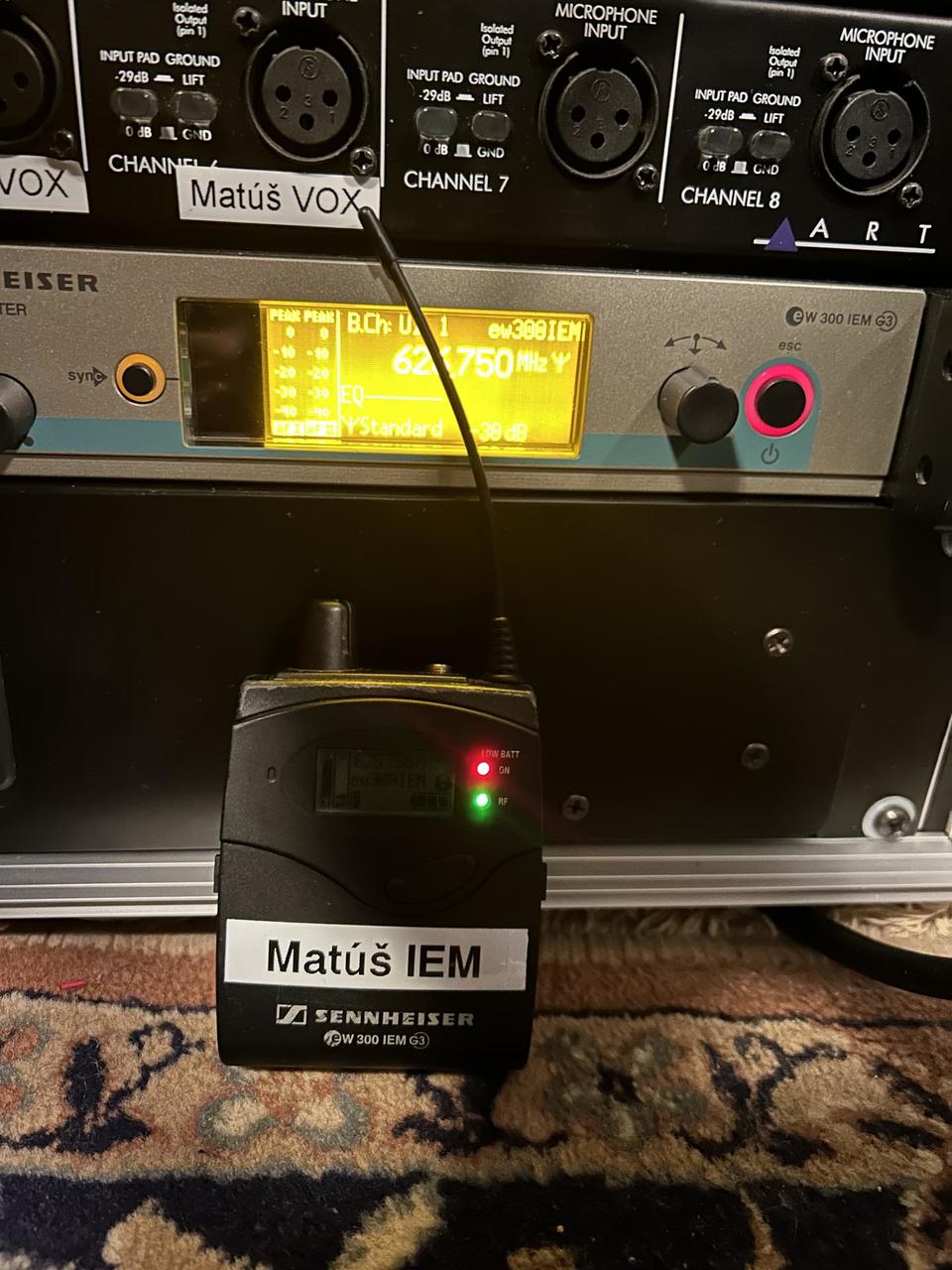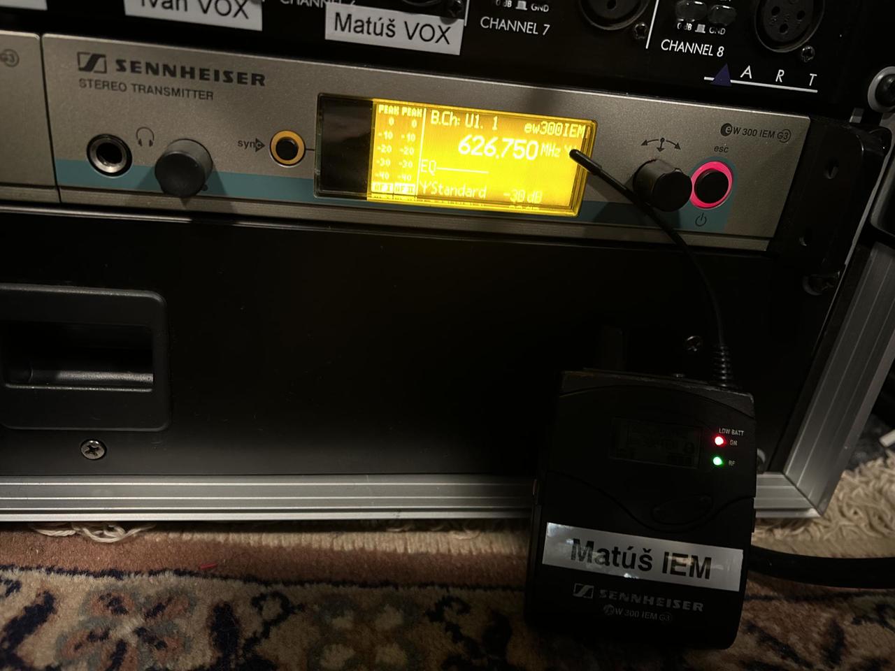 Predám bezdrôtový odposluchový systém Sennheiser EW300 G3 v B pásme (626-668MHz). Predávam bez rackového príslušenstva. Anténa a neoriginálny zdroj súčasťou. Cena 750€