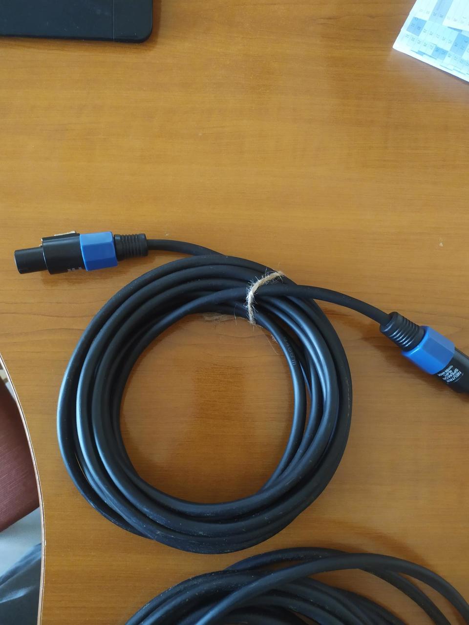 Prodám 3 ks kabelů 2 x 8 m a 1x 5 m. Speakon Neutriky, odolný materiál, slušná měď, žádná čínská slitina. Koupil jsem je omylem k aktivním boxům. Zakázkové, jednou použité, nové. Zásilkovna možná. Cena za všechny tři.