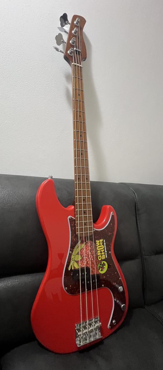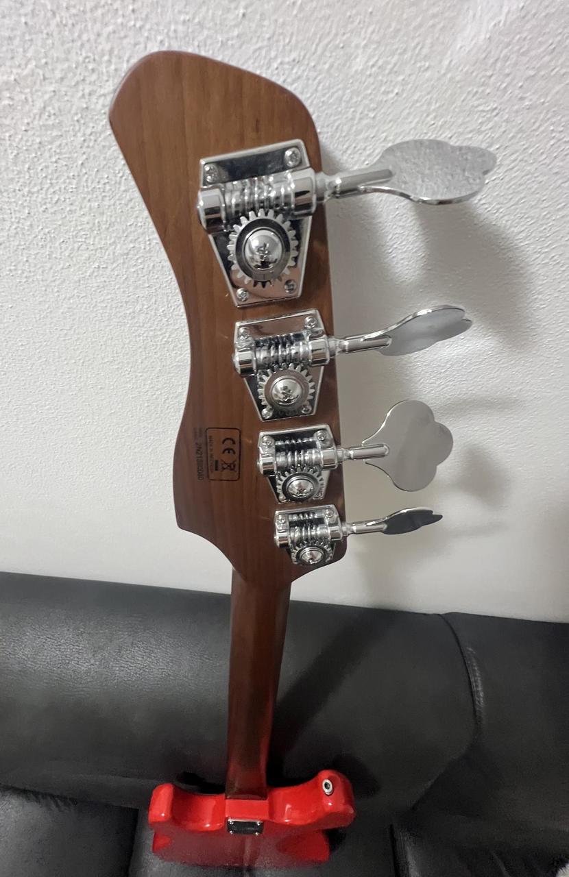 Aktivně jsem na ni hrál cca 1 rok, poslední rok mi jen leží doma, takže ji posílám dál, ať dělá radost někomu, kdo ji využije. Basa byla u profíka na kompletní seřízení – krk rovný, dohmat příjemně nízko, všechno funguje jak má. Stačí dát nové struny, zapnout a jedeš. Pražce jsou ve výborném stavu, žádné zásadní oděrky, celkově moc pěkný kus. Prodávám jen proto, že mám jiné nástroje a už pro ni nemám využití. Možnost vyzkoušení samozřejmostí.