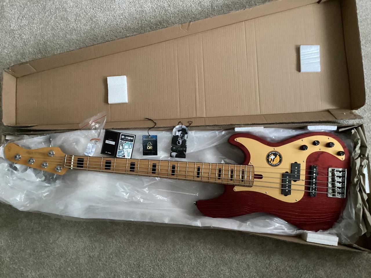 Tato značka má velmi dobrý poměr kvalita/cena, ale může se vám stát, že zrovna vyberete smolný kus (špatné sesazení kobylky, geometrie krku a strun, drnčící pražce...) a pak doženete nižší pořizovací náklady servisem. K tomuto kusu jsem přikoupil Thomann PLEK servis pro ocelové pražce v ceně > 5 tis Kč, https://www.thomann.de/cz/thomann_plek_service_standard_sts.htm. Popis úkonů: -Stretching and tuning factory-installed DR Strings Dragon Skin+ DBQ5-45 Coated .045-.125 strings to standard pitch -Checking Premium Light Weight Open Gear machine heads for function and tuning stability -Checking the Marcus Super-PJ Revolution pickups for function -Checking electronics for flawless function -Checking the medium stainless steel frets and (if necessary) smoothing the fret ends -Checking and cleaning the maple fingerboard -Checking and adjusting the neck curvature (truss rod adjustment) -Performing Thomann Plek Service Standard STS -Checking and adjusting the Marcus Miller Modern-S bass bridge -Checking the bone nut and adjusting the nut slots -Checking and adjusting string action -Checking the fingerboard for dead spots -Checking and adjusting the intonation -Checking and adjusting the pickup height -Adjust the string action: B string possibly 2.6 mm at the 12th fret, G string possibly 2.2 mm at the 12th fret Demo https://youtu.be/pHhKjy5w1c4 Více fotek https://youtu.be/zoX8Bjde1Dc Covery: https://youtu.be/tGufMG6pOqg https://youtu.be/K9E7HnO0AF4 Pořizovací cena basa + PLEK celkem > 22 tis., přenechávám za 15 tis. Oproti fotkám má jen sundanou samolepku. Mám dvě P7-5, nechávám si starší a obouchanou verzi s eben. hmatníkem. Basa je k vyzkoušení a vyzvednutí v Plzni. Výměnu nehledám. Při příjemném jednání nebo cestě zdaleka mohu drobně vyjít cenově vstříc.