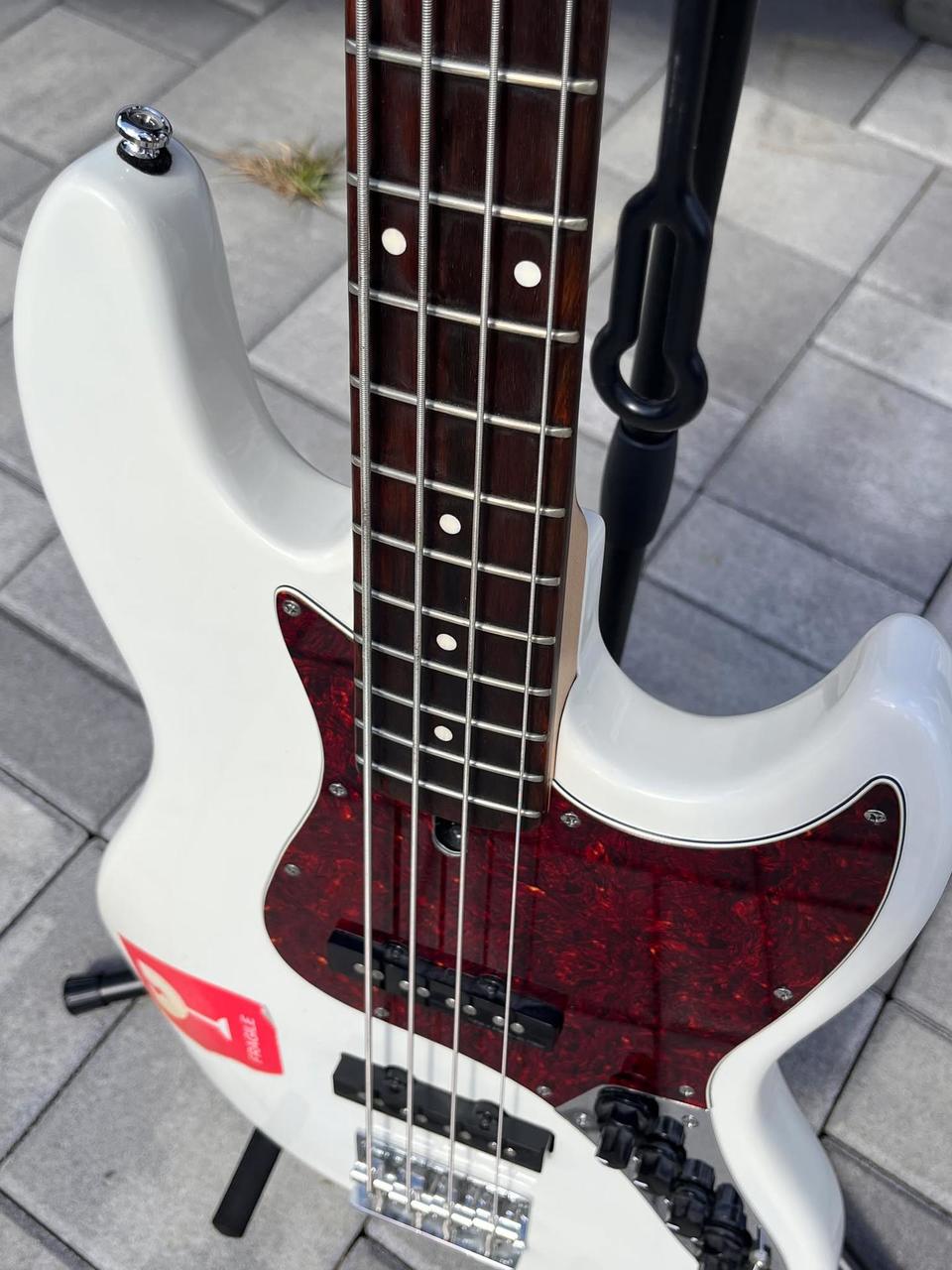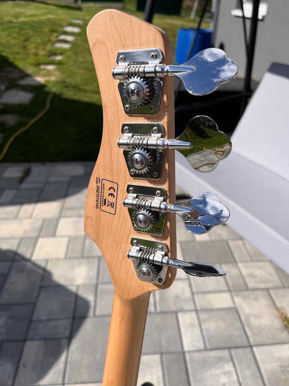 Obsahuje nad rámec zakoupený PICKGUARD ZDARMA (v balení i původní). Kytara má aktivní i pasivní režim, třípásmový ekvalizér a výborné snímače Marcus Super-J Revolution. Nabízí široké možnosti nastavení zvuku – hodí se jak do studia, tak na koncerty. Krk je javorový, pohodlný a dobře sedí do ruky. Celkově působí nástroj velmi kvalitně, i ve srovnání s dražšími modely. Za mě naprostá pecka v aspektu ceny a toho, co za ní dostanete. Po vzhledové stránce má baskytara už menší relic známky, hraná cca 2 roky, připomíná lehce modely fenderu. Je to ideální volba pro hráče, kteří chtějí výborný nástroj bez kompromisů, a hlavně za rozumnou cenu. V minulosti jsem vyměnil původní output jack za více spolehlivý (viz fotka), pár vlastníků dle vláken na fórech včetně mě mělo totiž s původním jackem menší problémy. Váha: +- 3,9kg KE KYTAŘE: původní černý pickguard a klasické imbusáky. Důvod prodeje: od té doby, co mě chytlo hraní na elektrickou kytaru mi tato baskytara více méně jen sedí ve stojanu. Věřím, že udělá radost zase někomu jinému. Bezpečné zaslání je samozřejmostí