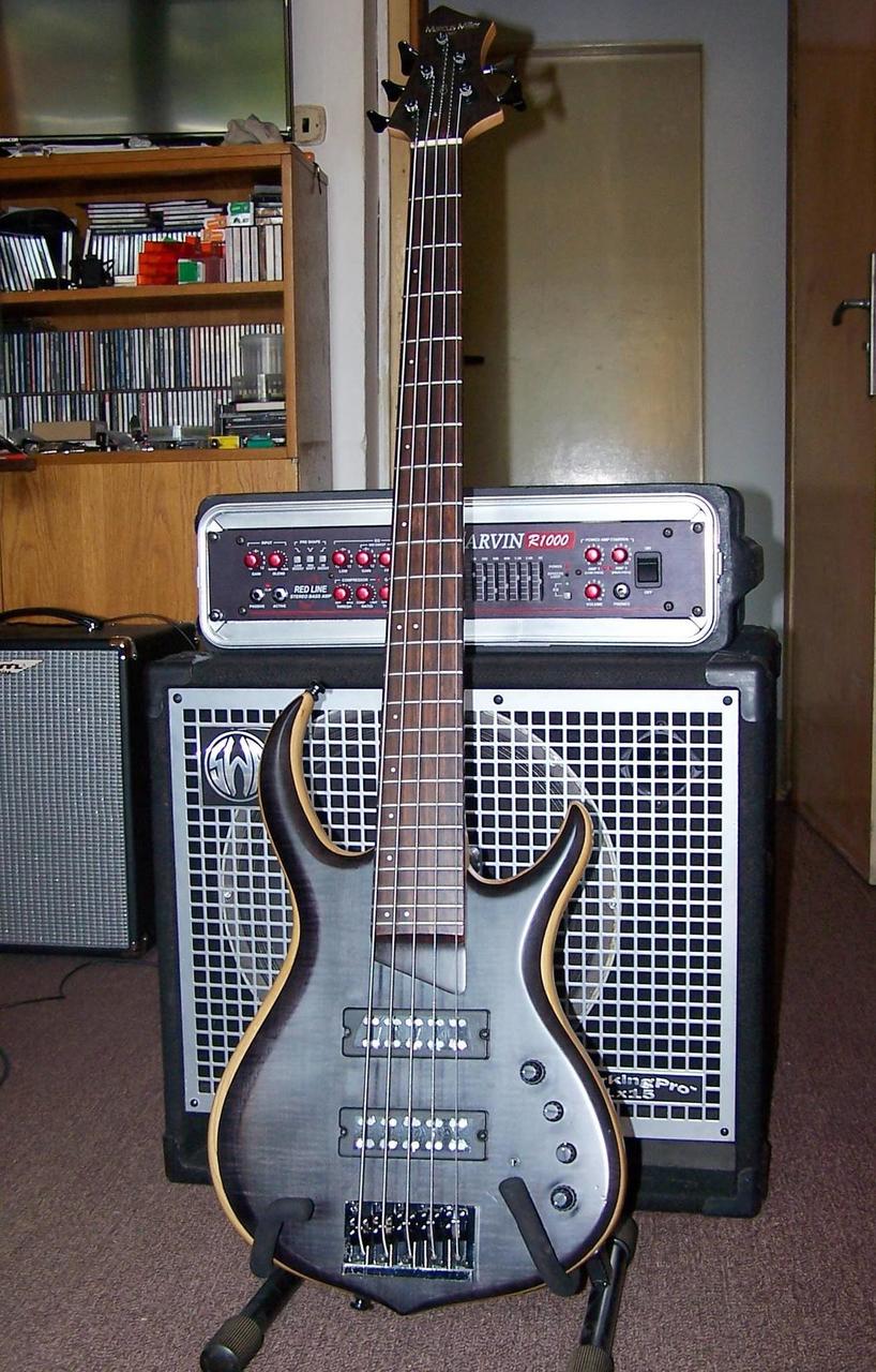 Solidní pětistrunná baskytara s menzurou 35“ a velkou variabilitou nastavení. Přepínač aktiv-pasiv. M7 první generace, korpus a krk spojuje 5 šroubů